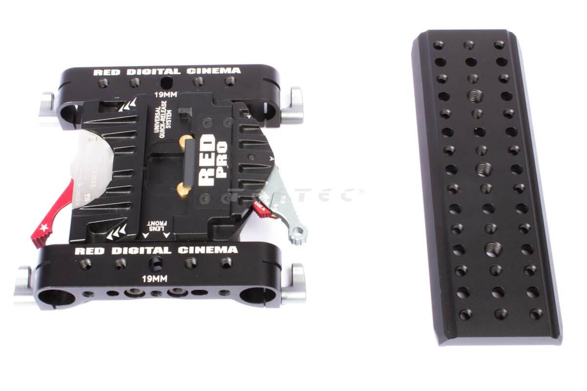 - Das DSMC® Quick Release Platform Pack, das von RED® für die leichteste und kompakteste Aufnahmekonfiguration entwickelt wurde, beinhaltet die RED Quick Release Platform, zwei DSMC Universal Mounts 19mm und eine Dovetail Mounting Plate (für Nicht-ARRI Köpfe). Die Schnellwechsel-Plattform wird direkt an einem ARRI-Kopf montiert, ohne die Dovetail-Montageplatte.