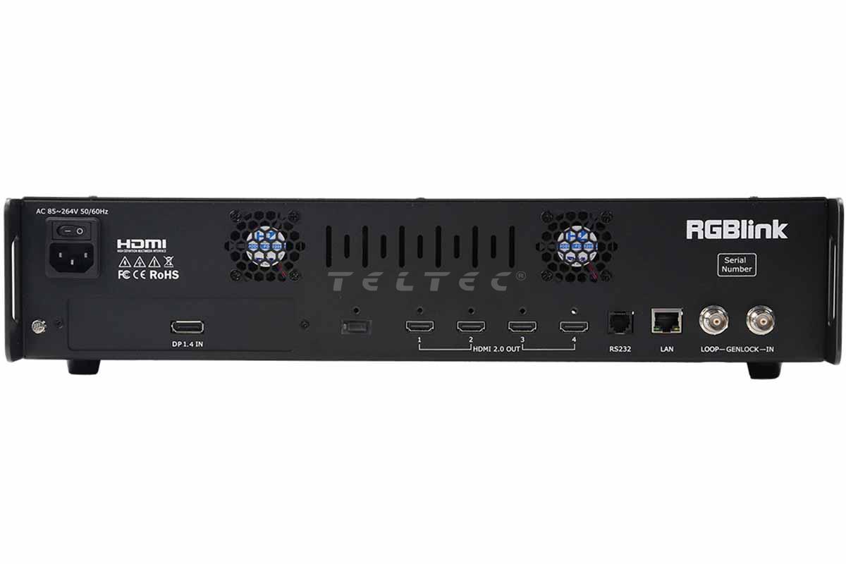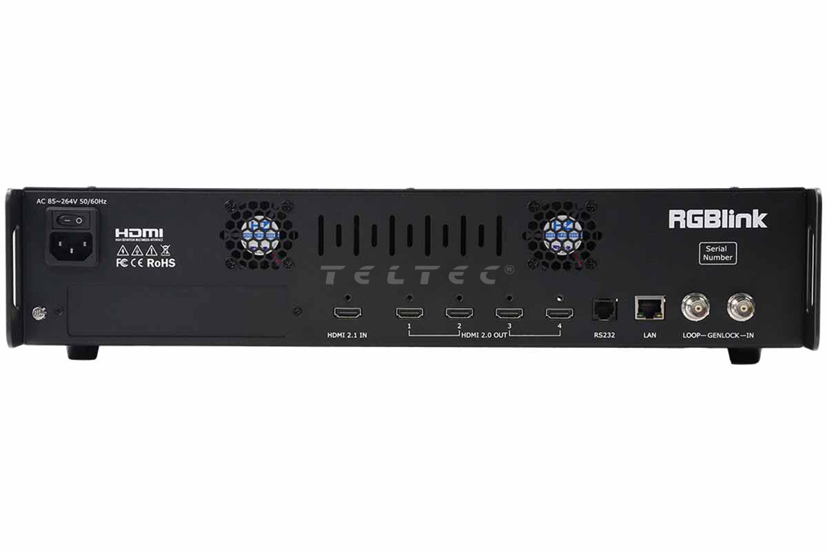 Der RGBlink D8 8K Native Video Scaler ist ein Videoprozessor auf 8K@60-Level mit HDMI 2.1. Neben der HDMI 2.1 Schnittstelle für 8K Eingangssignale hat das D8 vier zusätzliche HDMI 2.0 Ausgänge für 4K-Signale. Die Outputsignale können individuell angepasst werden, etwa durch Zuschneiden und Skalieren von Ebenen oder horizontales Strecken über vier Bildschirme. Dank des 4-Zoll-LCD-Monitors mit Touch-Steuerung wird die Benutzerfreundlichkeit erhöht. Er befindet sich an der Frontplatte des Geräts. Gesteuert wird der Videoprozessor über die XPOSE-Software, allerdings werden auch Android- und Apple-Smartphones/Tablets sowie IP-gesteuerte Webserver unterstützt. Darüber hinaus gibt es auch eine API-Schnittstelle, sodass Geräte von Drittanbietern verwendet werden können, was die Nutzung vielseitiger gestaltet. Weitere Funktionen sind der Genlock-Eingang und Schleife sowie Genlock-Synchronisation, ungleiches Splicing mit mehreren Splicing-Layouts, die zur Verfügung stehen, die Unterstützung der Standard-Ausgangsauflösung und Anpassung der Ausgangsauflösung als auch Hot-Swapping.