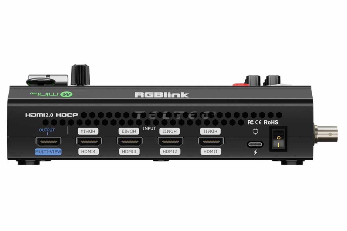 Der RGBlink Mini ISO verfügt über vier 4K-HDMI-Eingänge und vier SDI-Eingänge, die Signale von PC, Laptop, Kamera und mehr unterstützen. Sowohl Line- als auch Mic-Pegel-Audio werden unterstützt. Er hat zwei 2K/Full-HD HDMI-Ausgänge für das Monitoring von Multiview-Previews, Programmen oder Testmustern. Ein USB-Ausgang unterstützt die Kodierungsformate YUY2 und MJPEG Formate, die als Webcam für das Streaming auf Facebook, YouTube, ZOOM, etc. erkannt werden können. Der mini-ISO ist mit einem 3,5-Zoll-TFT-Touchscreen für die Menübedienung und die Anzeige von Videoquellen ausgestattet. Der Mini-ISO ist vollgepackt mit Funktionen wie dynamische Ausgangssteuerung Kontrolle, Multiview-Vorschau, Bild im Bild, Chroma Key, Luma Key, Übergänge, integrierte PTZ-Kamerasteuerung und vieles mehr. Der mini-ISO ist kompatibel mit Windows- und macOS-Desktop-Betriebssystemen und unterstützt die Steuerung über iOS- und Android-Mobilgeräte. Es unterstützt TAO Cloud integrierte Steuerung und gleichzeitiges Streaming zu 4 Live-Streaming-Plattformen über RTMP(S).