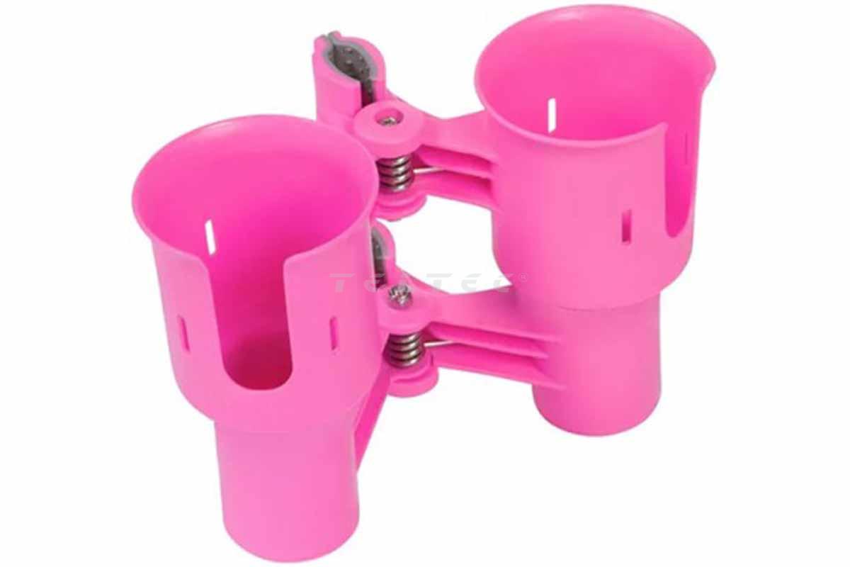 Der RoboCup Hot Pink ist ein Getränkehalter mit zwei Cups, den man an diversen Geräten montieren kann. Die starken federgestützten Klemmen können problemlos an flachen und runden Kanten von bis zu 50 mm Dicke geklemmt werden. Die Cups nehmen Dosen und Flaschen mit einem Durchmesser von ca. 50 bis 75 mm auf.