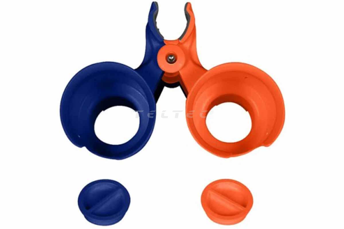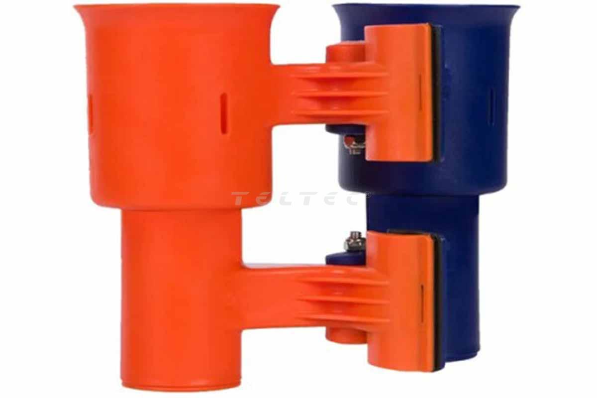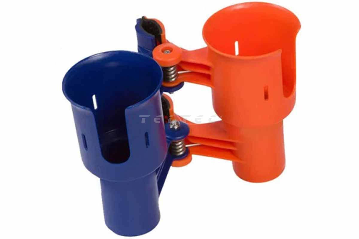 Der RoboCup Orange/Navy Blue ist ein Getränkehalter mit zwei Cups, den man an diversen Geräten montieren kann. Die starken federgestützten Klemmen können problemlos an flachen und runden Kanten von bis zu 50 mm Dicke geklemmt werden. Die Cups nehmen Dosen und Flaschen mit einem Durchmesser von ca. 50 bis 75 mm auf. Ein Cup ist schwarz, der andere dunkelblau.