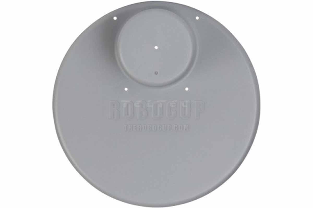 Die RoboCup Plate: Gray ist ein ca. ∅21,6 cm großer Teller mit 3-teiliger Fläche und Getränkehalterung. Die Plate wird mit ihrer eigenen Getränkehalterung auf den RoboCup gesteckt, sodass beim Einsatz dieser Erweiterung kein Platz verloren geht. Die Fläche für Speisen sind in einen großen Mittelteil und zwei gleichermaßen kleine Seitenteile eingeteilt. Insgesamt hat der Teller 5 Abflusslöcher, um verschüttete Getränke etc. besser ableiten zu können. Die RoboCup Plate hat eine glatte Beschichtung, welche leicht gereinigt werden kann, per Hand oder im oberen Fach einer Spülmaschine.