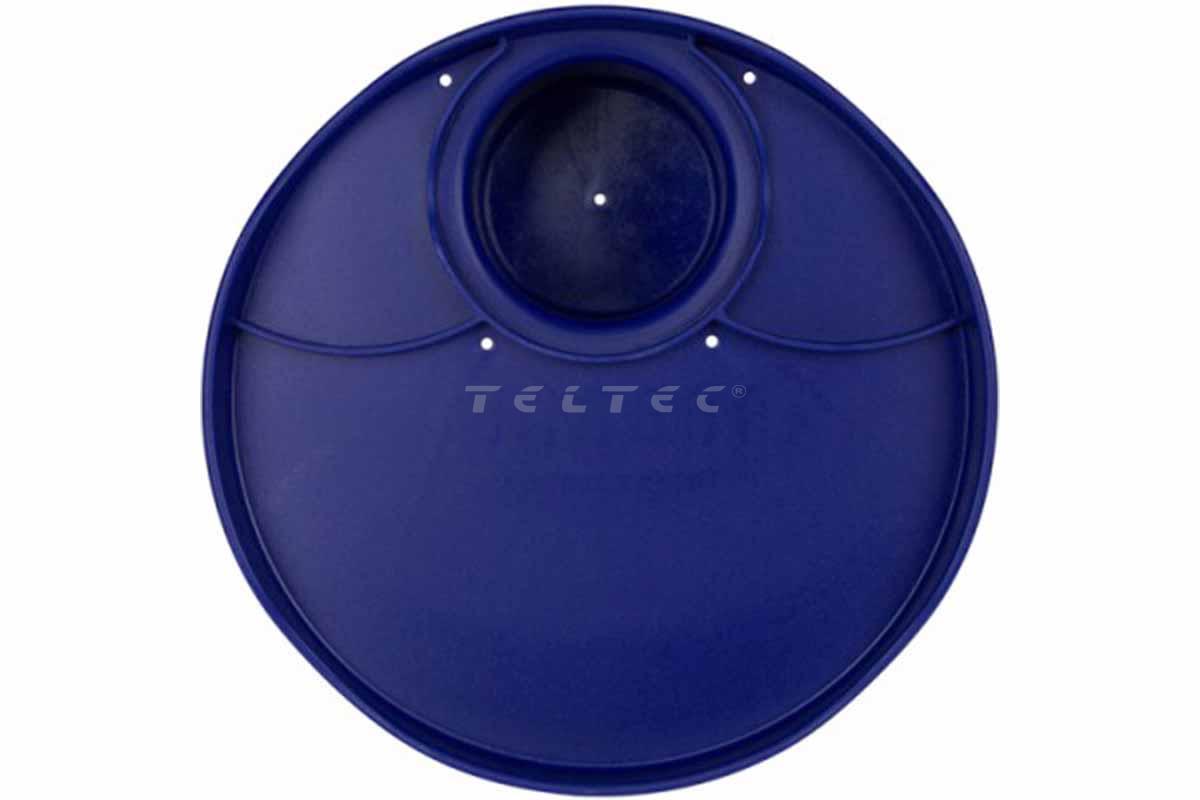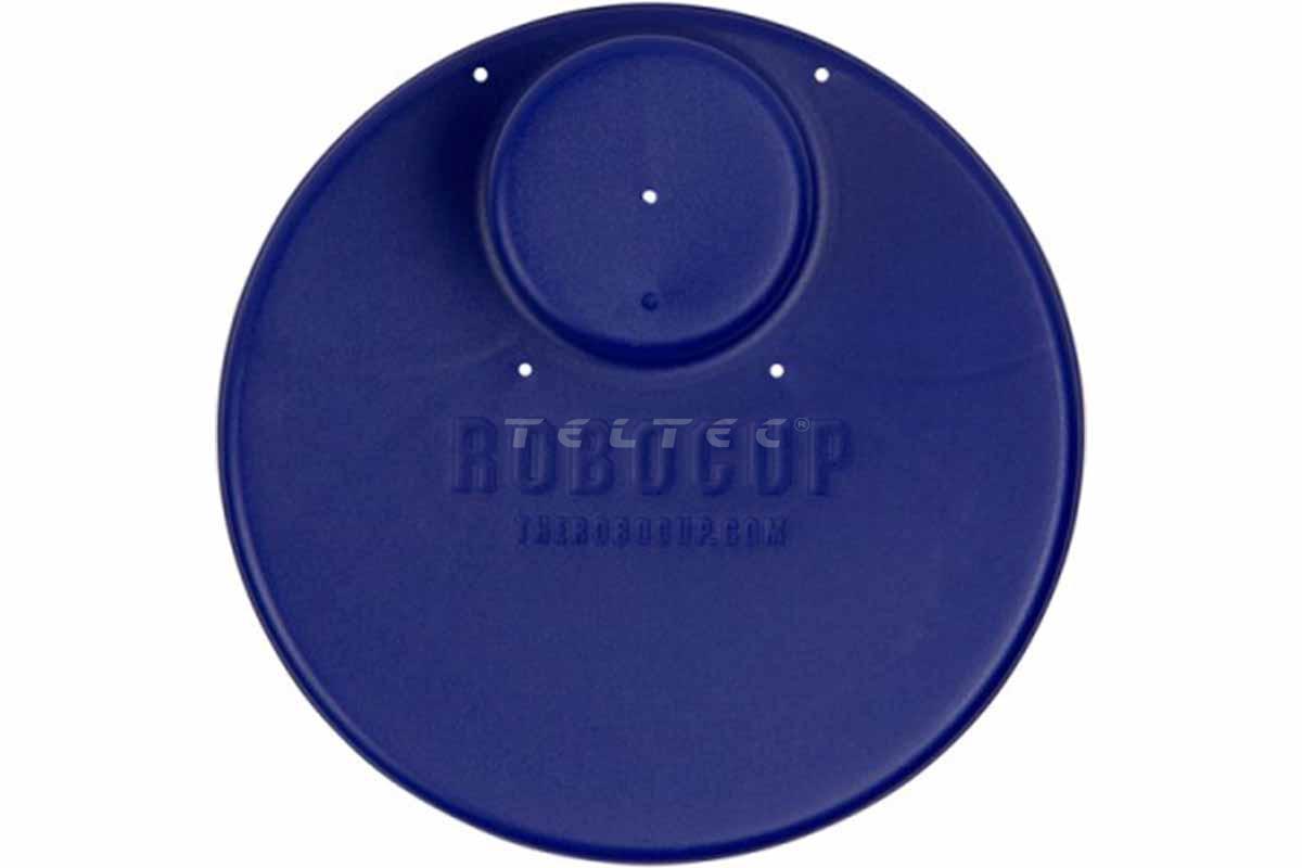 Die RoboCup Plate: Navy ist ein ca. ∅21,6 cm großer Teller mit 3-teiliger Fläche und Getränkehalterung. Die Plate wird mit ihrer eigenen Getränkehalterung auf den RoboCup gesteckt, sodass beim Einsatz dieser Erweiterung kein Platz verloren geht. Die Fläche für Speisen sind in einen großen Mittelteil und zwei gleichermaßen kleine Seitenteile eingeteilt. Insgesamt hat der Teller 5 Abflusslöcher, um verschüttete Getränke etc. besser ableiten zu können. Die RoboCup Plate hat eine glatte Beschichtung, welche leicht gereinigt werden kann, per Hand oder im oberen Fach einer Spülmaschine.