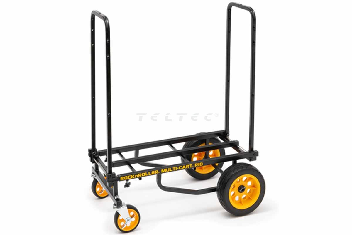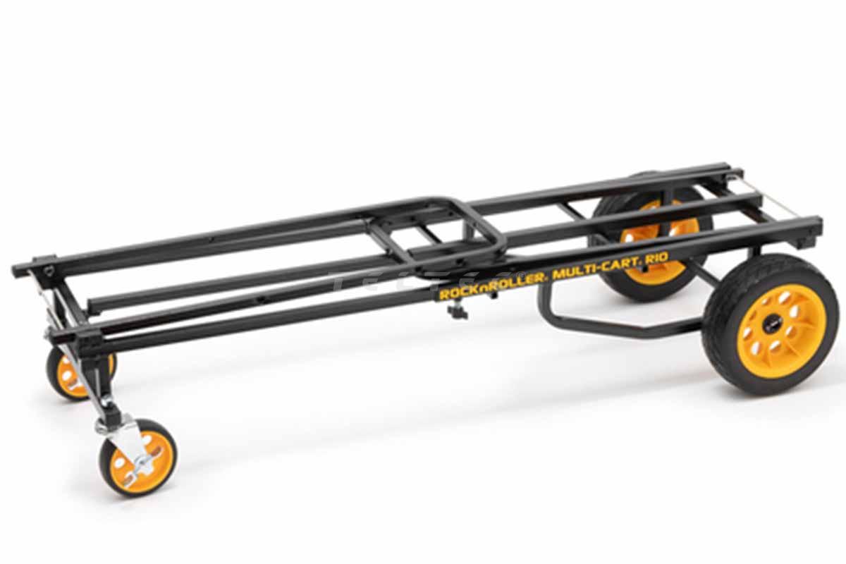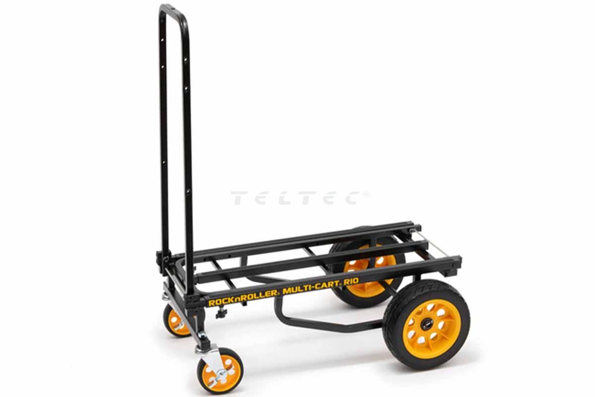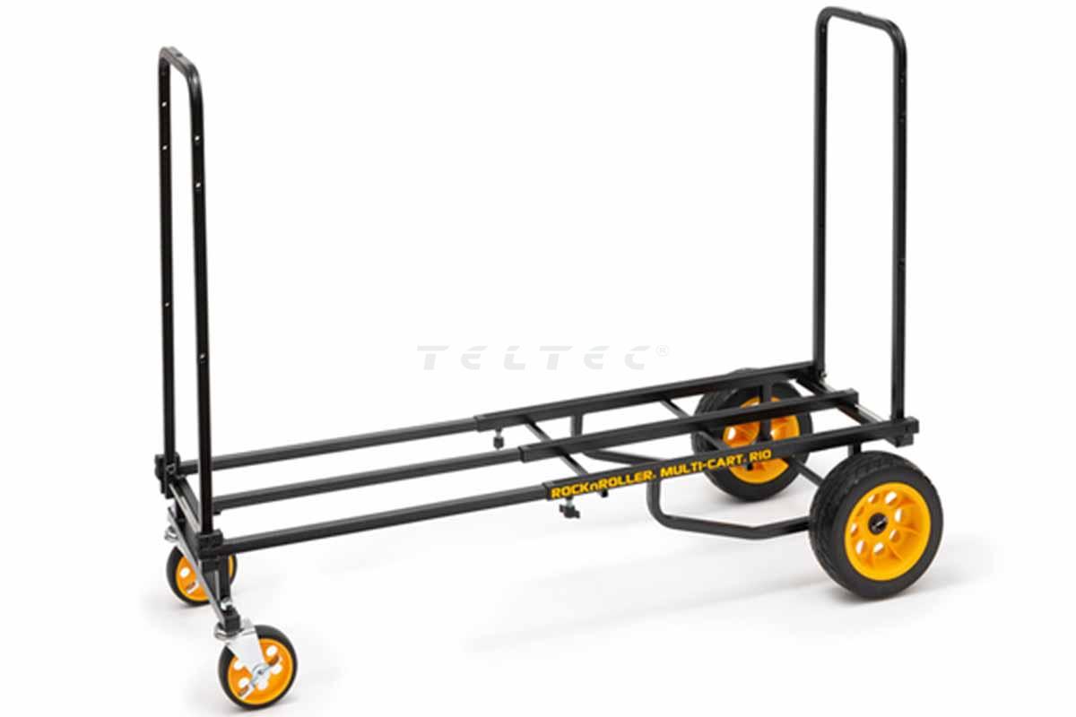 Der RockNRoller R10RT (Max) ist ein 8-in-1 Geräteträger mit schwenkbaren Vorderrädern. Die stabilen 10-Zoll-Hinterräder sind mit Schaumstoff gefüllt, die 5-Zoll-Vorderräder sind schwenkbar und mit Bremsen versehen. Sie bieten eine hervorragende Traktion, die mit der von pneumatischen Reifen vergleichbar ist, nur dass hier das ständige Aufpumpen wegfällt. Der Wagen lässt sich ganz einfach an verschiedene Ladegrößen anpassen, um möglichst effizient mit ihm arbeiten zu können. Von der Länge her reicht er von ca. 86,5 bis zu 132 cm und kann dabei bis zu 226 kg Last tragen. Damit der Wagen bei Nichtgebrauch nicht im Weg steht oder einfacher transportiert werden kann, lässt er sich auch zusammenfalten. Der Stahlrahmen des R10RT ist pulverbeschichtet, um einerseits langlebiger zu sein, aber auch um ein Verrutschen der Transportware zu minimieren.
