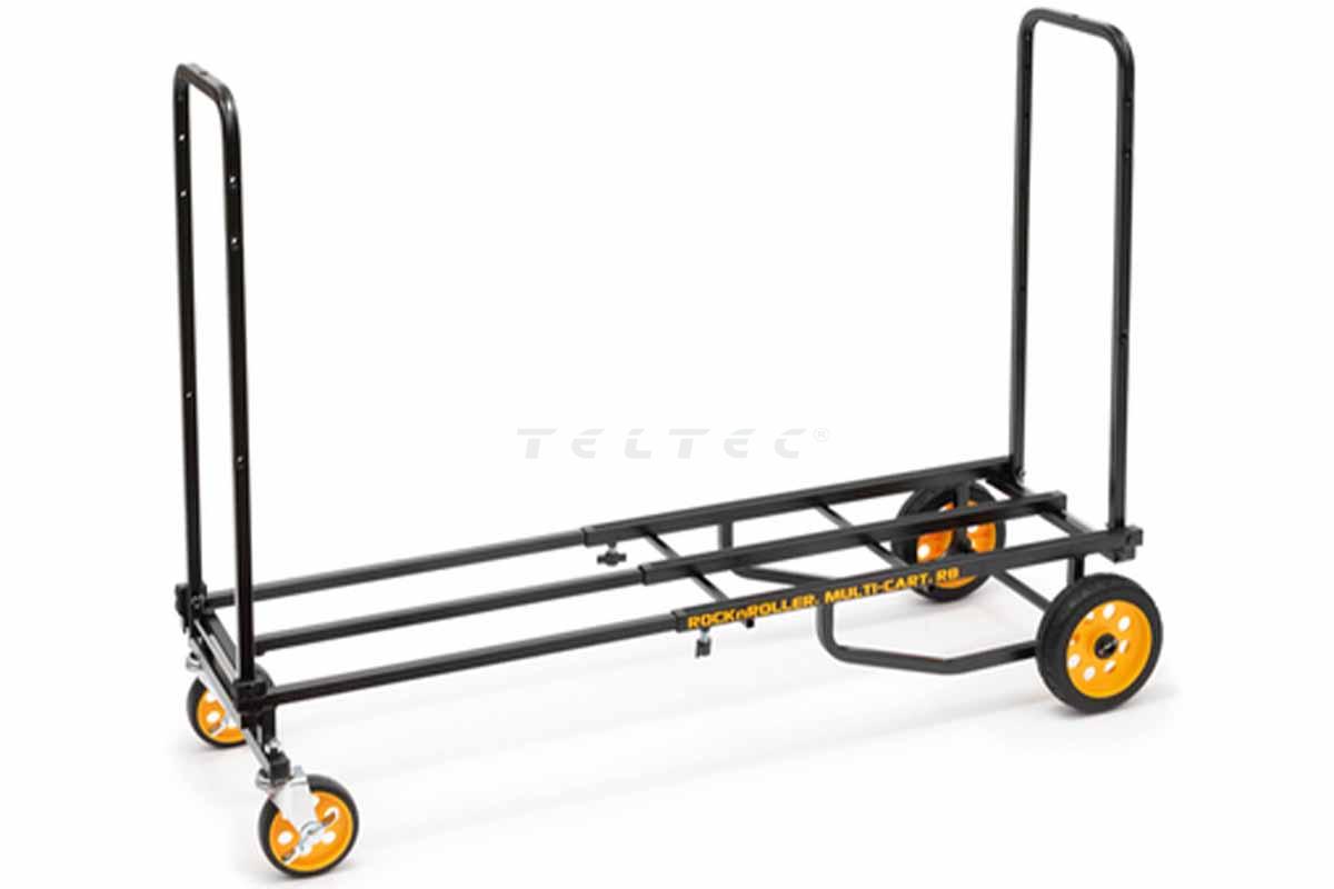 Der RockNRoller R10RT (Max) ist ein 8-in-1 Geräteträger mit schwenkbaren Vorderrädern. Die stabilen 8-Zoll-Hinterräder sind mit Schaumstoff gefüllt, die 5-Zoll-Vorderräder sind schwenkbar und mit Bremsen versehen. Sie bieten eine hervorragende Traktion, die mit der von pneumatischen Reifen vergleichbar ist, nur dass hier das ständige Aufpumpen wegfällt. Der Wagen lässt sich ganz einfach an verschiedene Ladegrößen anpassen, um möglichst effizient mit ihm arbeiten zu können. Von der Länge her reicht er von ca. 86,5 bis zu 132 cm und kann dabei bis zu 226 kg Last tragen. Damit der Wagen bei Nichtgebrauch nicht im Weg steht oder einfacher transportiert werden kann, lässt er sich auch zusammenfalten. Der Stahlrahmen des R10RT ist pulverbeschichtet, um einerseits langlebiger zu sein, aber auch um ein Verrutschen der Transportware zu minimieren.