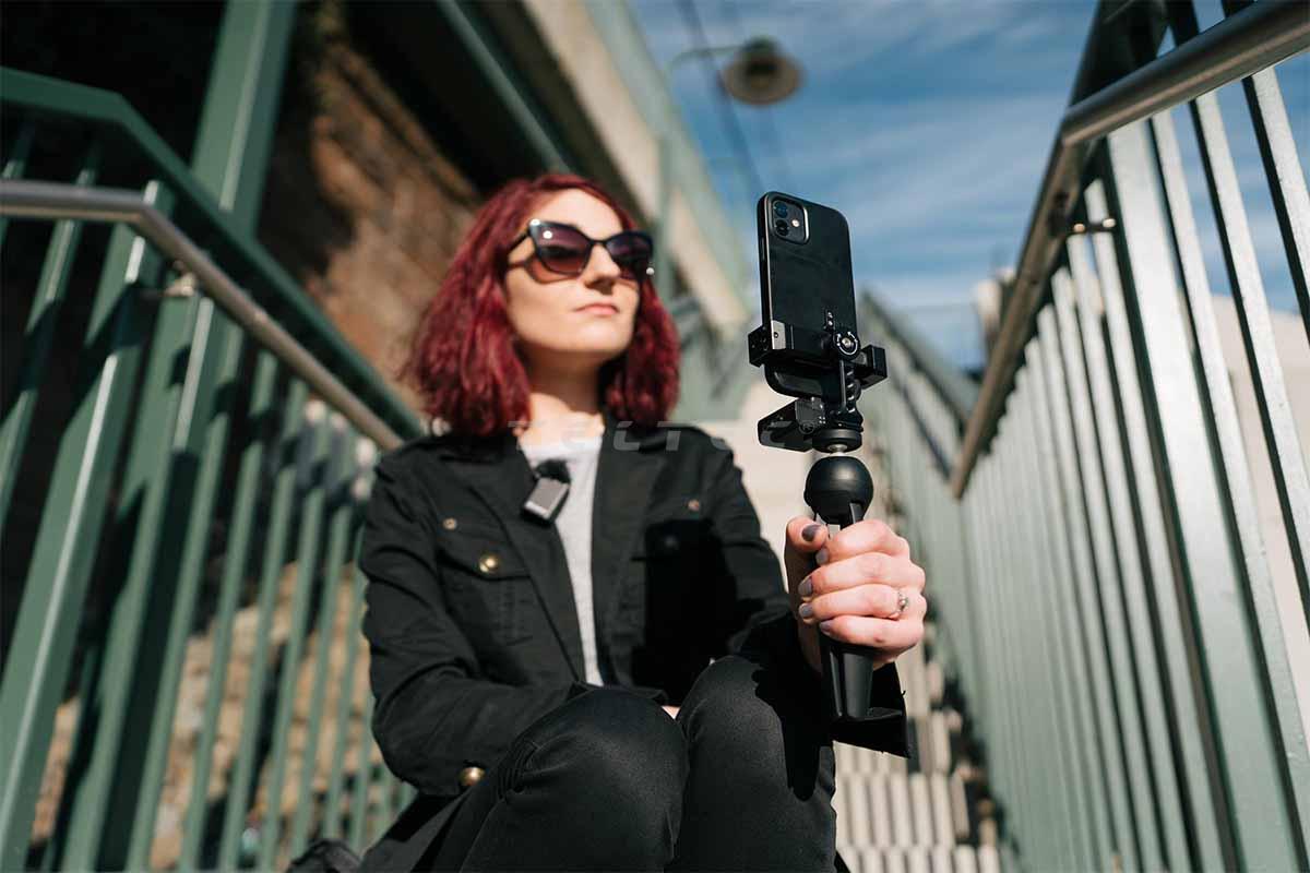 - Mit Zubehörschuhadapter, USB-C- und Lightning- Adapter; Gewindeaufnahme am Ladecase und an den Klemmen der Ansteckmikrofone