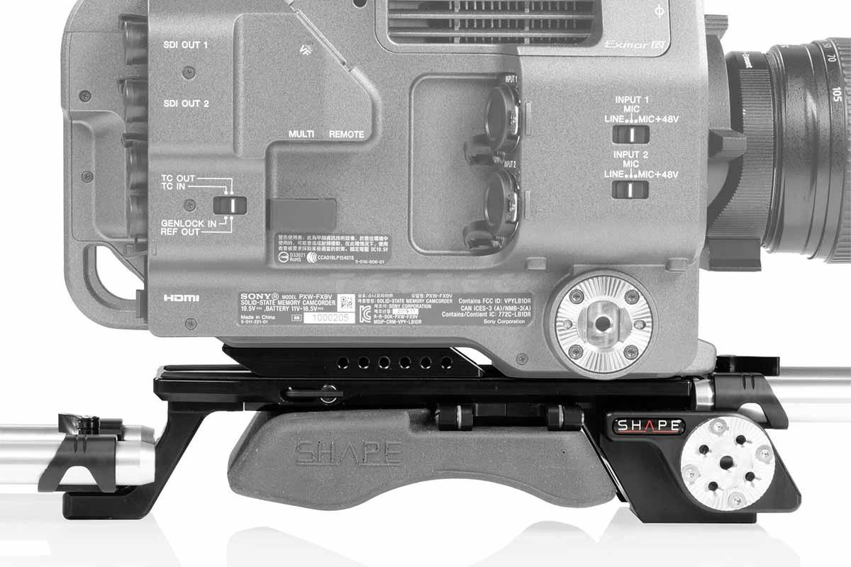 - Rear-Insert-Platte mit 3/8"-16 und 1/4"-20 Gewindelöchern liefert mehr Oberfläche zum sicheren Anbringen der FX9 an einem Tripod oder Schulter-Mount