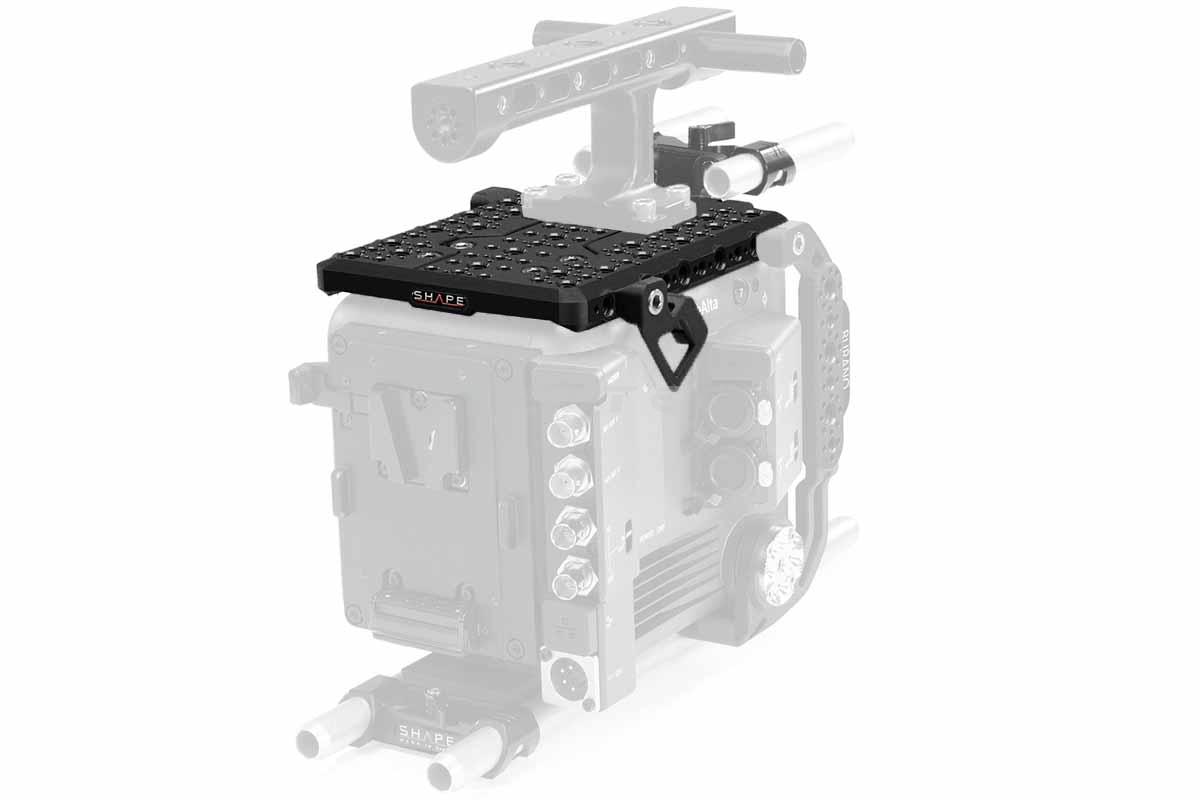 Die Shape Top Plate für die Sony Burano ist eine speziell angepasste Oberplatte mit vielen Erweiterungsmöglichkeiten. Sie ist leicht anzubringen und verfügt über einen Stangenblock, über die weiteres Zubehör montiert werden kann. Über die Befestigungspunkte können etwa Magic Arms oder Gelenkarme hinzugefügt werden, während die Platte auch noch mit den werkseitigen Obergriffen der Burano sowie der FX9 kompatibel ist.