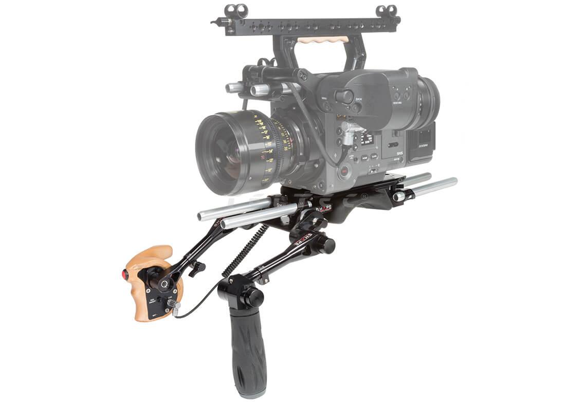 Das Shape Baseplate und Remote-Kit bietet die Grundlage für ein leichtes und robustes Schulter-Rig für die Sony Venice und enthält einen Teleskopgriff mit patentierter Push-Button-Technologie, die es ermöglicht, den Handgriff auf Knopfdruck in einer beliebigen Position zu fixieren. Zudem enthalten ist ein ergonomischer Remote-Start/Stop-Trigger, der ebenfalls an einem Teleskoparm mit Push-Button angebracht ist.