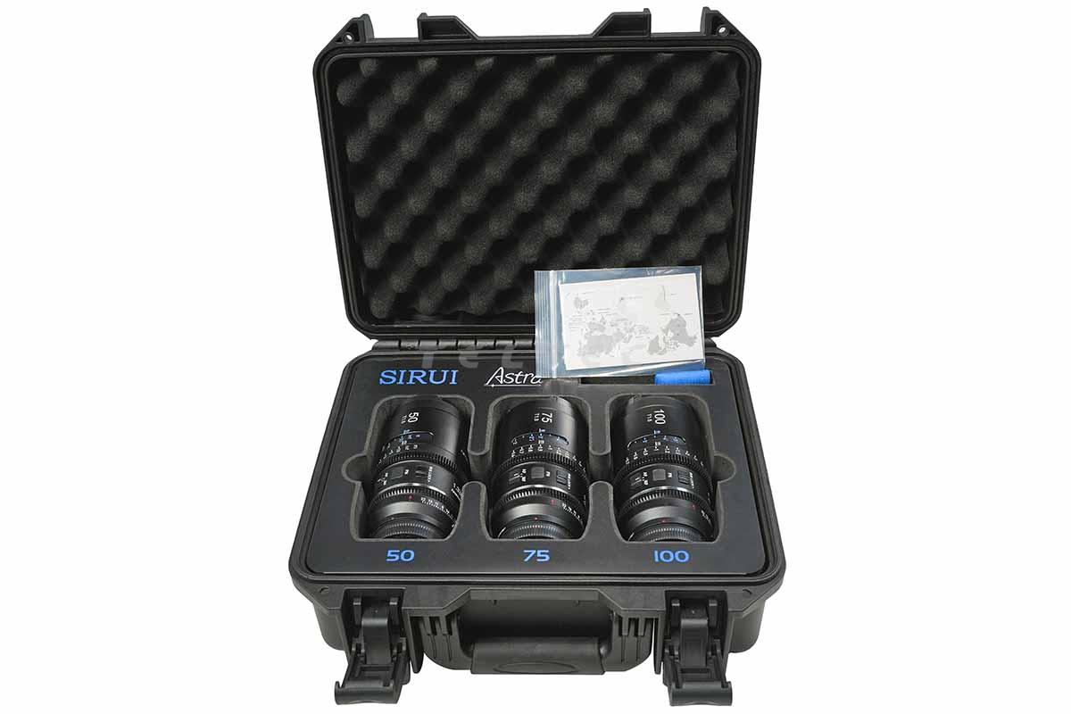 - 1x SIRUI Astra T1.8 1.33x Full Frame Autofocus Anamorphic Cine Lenses 50mm+75mm+100mm (E-Mount, Neutral Flare) + Case