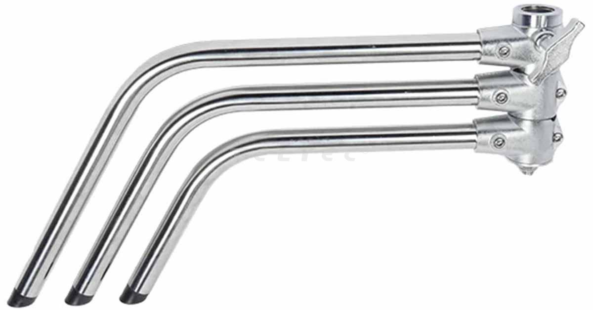 Der SIRUI C-Stand-01 320cm/125cm ist ein professionelles Lampenstativ aus Stahl mit Auslegearm. Es steht fest auf drei mit Gummifüßen versehenen Ausschwingbeinen und kann bis zu 25 kg tragen. Eine Sprungfeder in und ein äußerer Gummiring an der Ausziehstange sorgt dafür, dass angehängtes Equipment nicht nach unten schnellt und Schaden nimmt oder Finger verletzt. Das Stativ lässt sich von 150 auf bis zu 320 cm ausziehen, während der Auslegearm 125 cm misst. Dieser kann bis zu 5 kg tragen. Dank zweier Feststellschrauben lässt sich dieser in jedem Winkel nutzen. Der Universalzapfen mit 1/4"-20 und 3/8"-16 Schraubköpfen sorgt für eine hohe Kompatibilität mit vielerlei Ausrüstung.