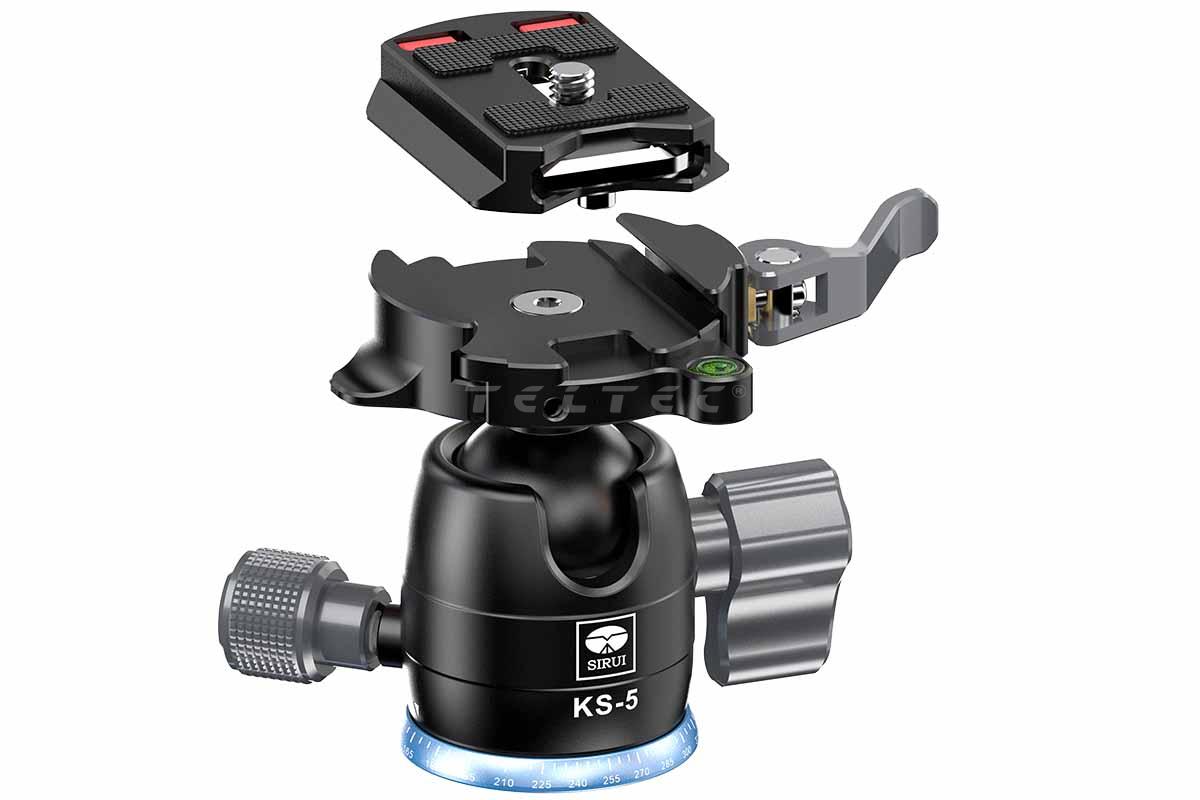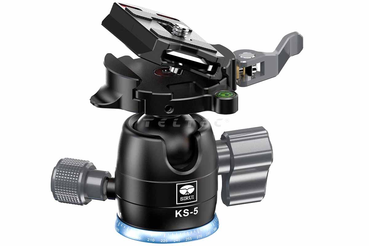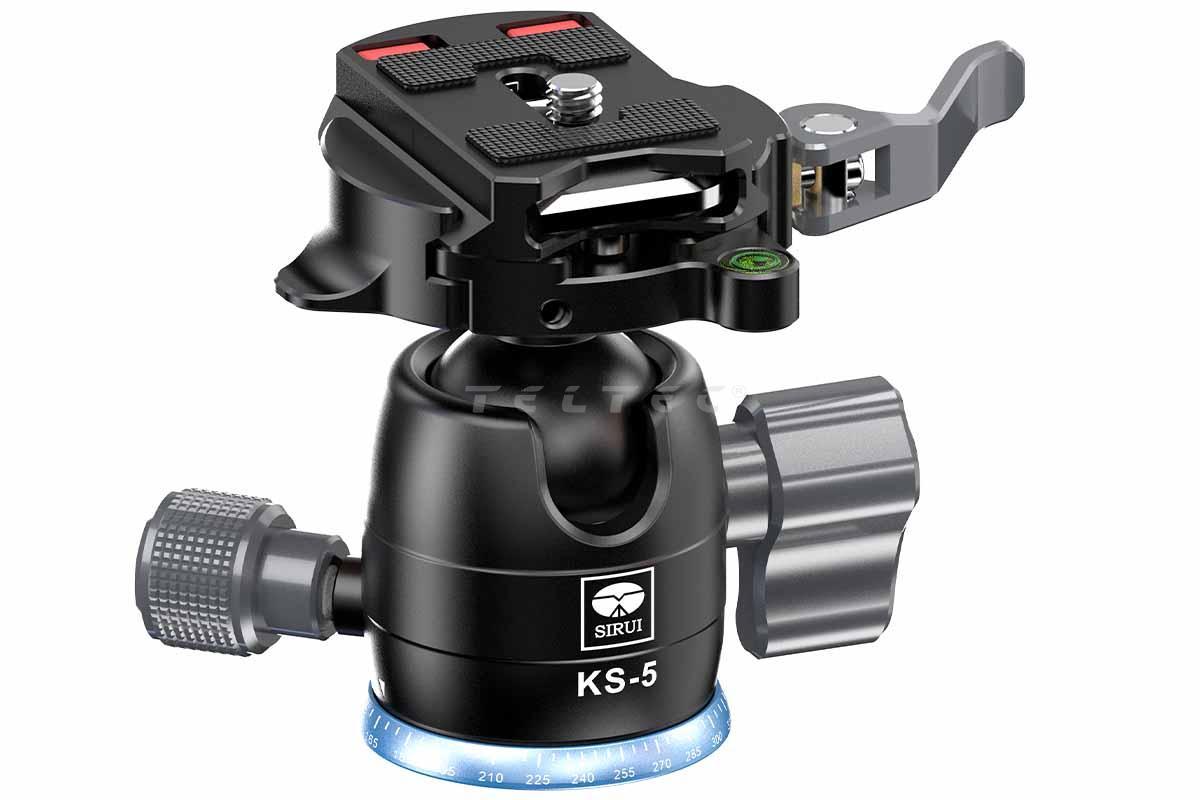 Das geradlinige Aussehen des kompakten SIRUI KS-5 vereinfacht die Bedienung während der Aufnahme. Der Kopf ist kompatibel mit den SIRUI AT, T-0S und A-Serie Reverse-Klappstativen und die Knöpfe können frei eingestellt werden. Der KS-5 ist geeignet für die Arbeit mit kompakter und leichter Ausrüstung. In Anlehnung an das SIRUI Rapid System wurde auch dieser Kopf mit einem Side-Load-System konzipiert, um die Kamera schneller und bequemer auf den Kopf setzen zu können. Das ist sogar einhändig möglich.