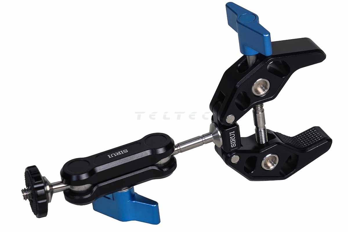 Die SIRUI MA-G Serie ist ein vielseitiges und robustes Befestigungssystem für Kameras, Smartphones und anderes Zubehör. Dank seiner starken Klemmkraft und dem flexiblen Kugelarm ermöglicht es eine sichere Montage an verschiedenen Oberflächen wie Stativen, Tischen oder Ähnlichem. Die mitgelieferte Smartphone-Halterung ist auch für größere Smartphones geeignet und sie ist abschraubbar, damit man mit dem 1/4“ Gewinde anderes Zubehör, wie z.B. kleine LED-Leuchten anbringen kann.