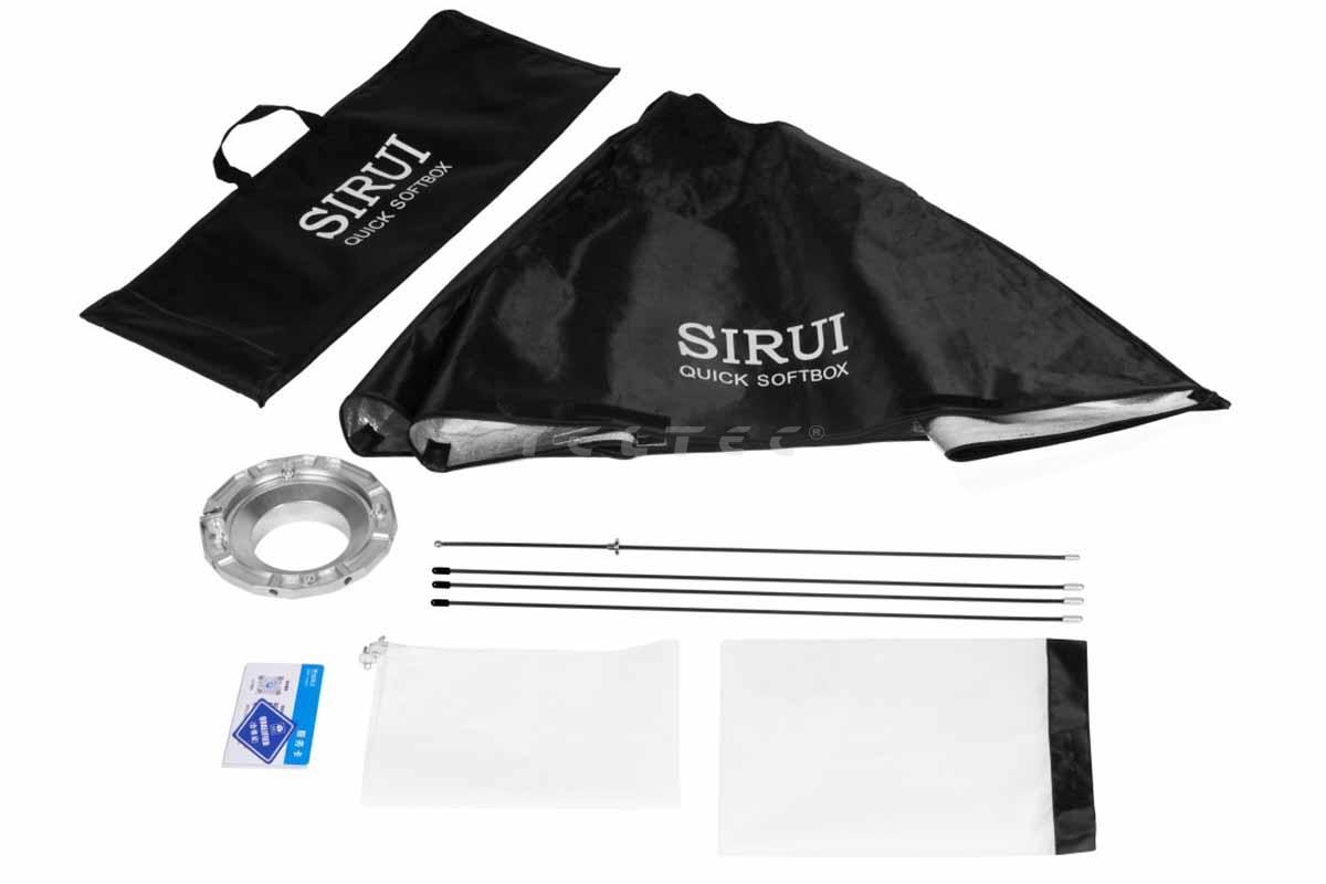 Die SIRUI RGX6090 Softbox ist eine 60x90 cm Softbox mit Bowens Mount. Durch die doppelte Stoffschicht sorgt sie für ein helles Fülllicht mit weichen Schatten um den Lichtkegel herum. Dank Bowens Mount liegt hier eine hohe Kompatibilität zu verschiedenen Leuchten vor, z.B. mit den beiden LED Studioleuchten CS200B und CS200.