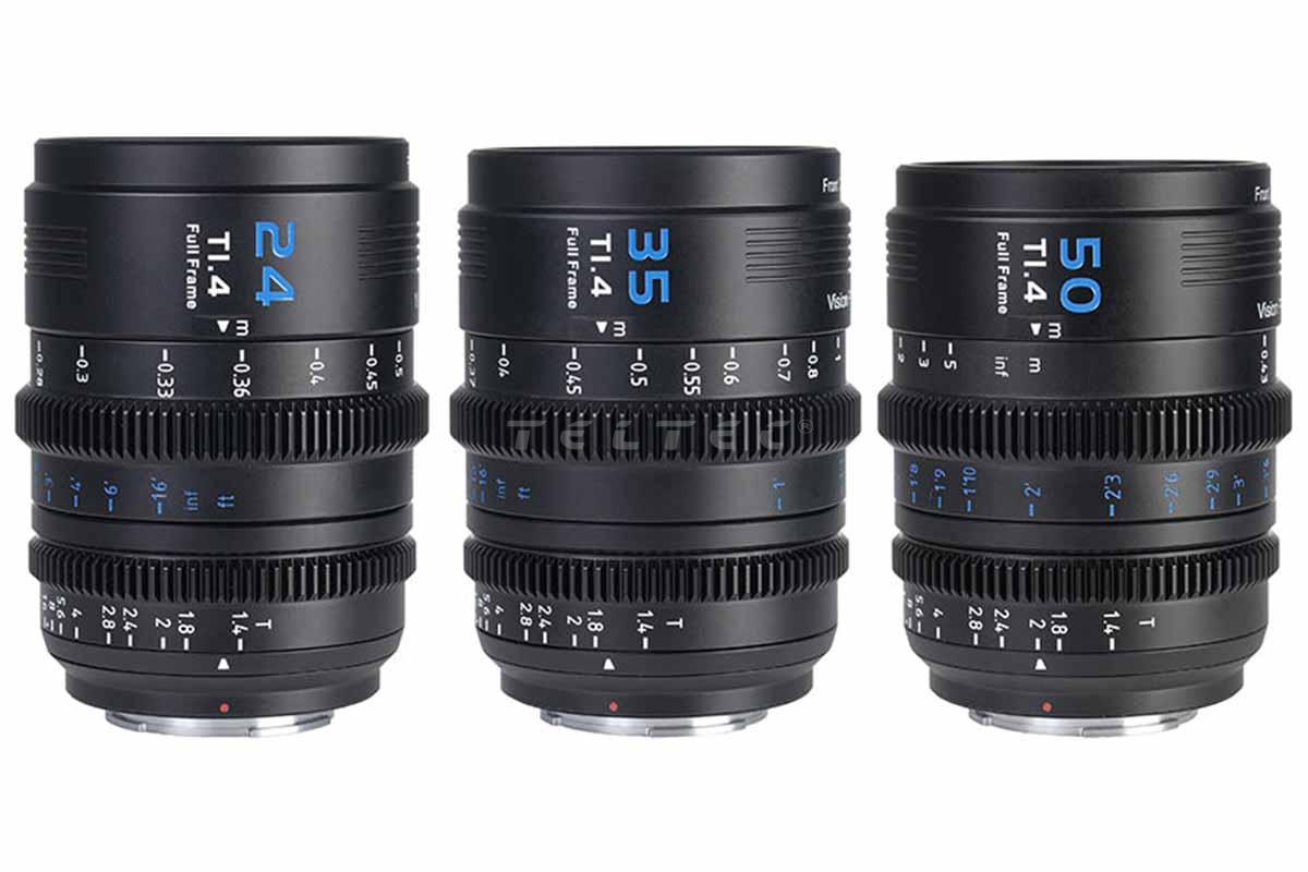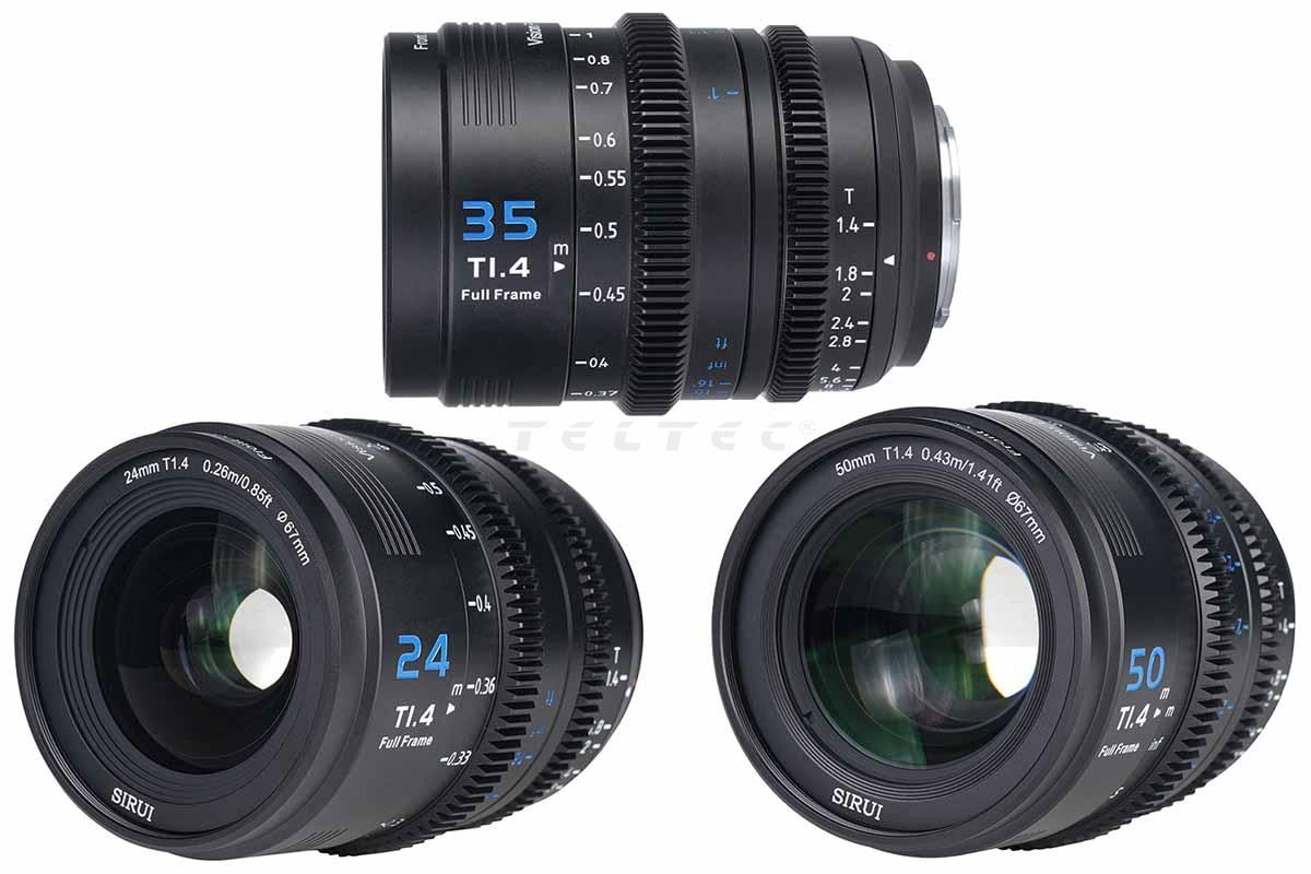 Set aus 3 Vollformat-Objektiven mit T1.4 Blende und austauschbaren Mounts