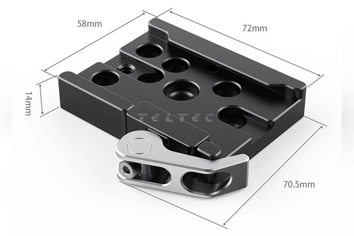 Die SmallRig 2143B Quick Release-Klemme ist eine Schnellspannklemme, welche kompatibel mit ARCA-Style-Zubehör ist. Sie verfügt über mehrere 1/4"-20, 3/8"-16 Gewindebohrungen an der Unterseite, um sie auf sie auf Stativen, Auslegern ect. Montieren zu können. Durch Drehen der kleinen Schraube am Schnellverschluss kann die Festigkeit eingestellt werden.