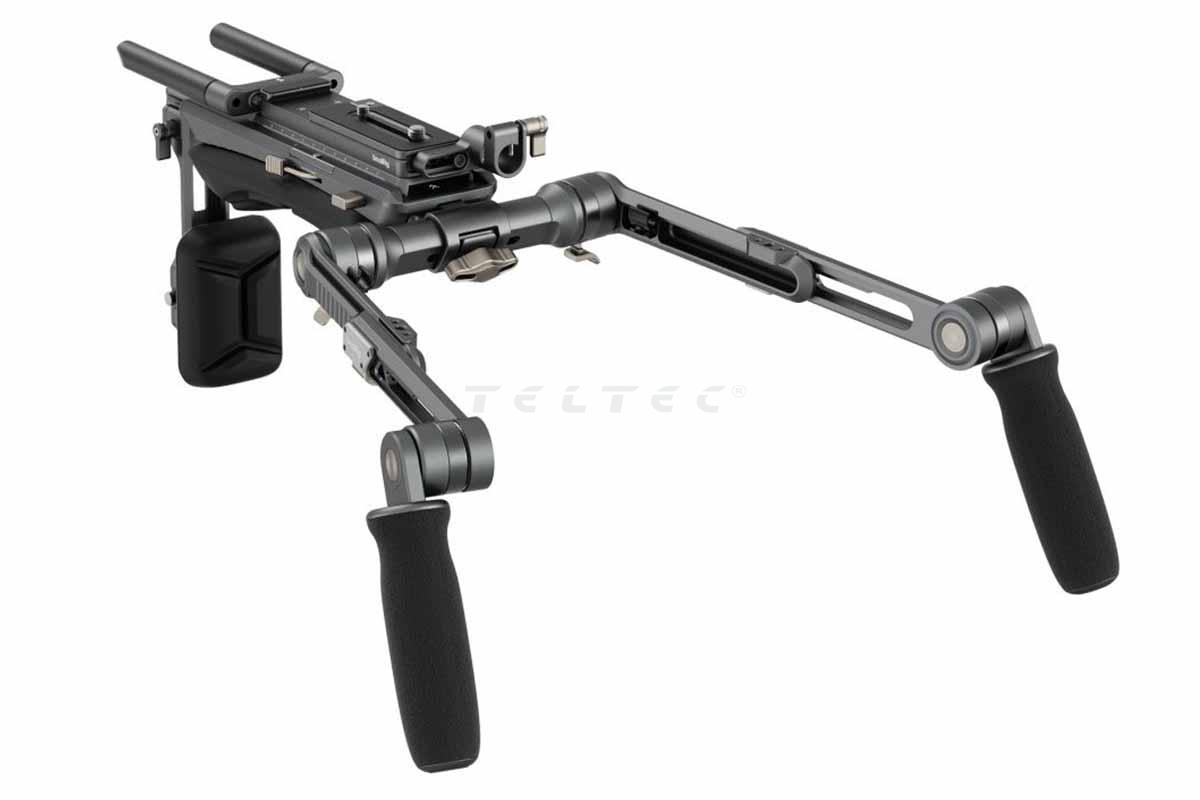 Das SmallRig 4181 HawkLock Shoulder Rig SR007 Pro ist eine speziell für effiziente Aufnahmen von der Schulter konzipierte Schulterstütze. Das Design es 4181 HawkLock Shoulder Rig SR007 Pro bietet eine schnelle Einrichtung und Anpassung. Das Shoulder-Rig verfügt über ergonomische Griffe die einen bequemen Griff bieten und eine 360°-Drehung ermöglichen. Das Rückenpolster lässt sich um bis zu 90° verstellen, so dass es in jedem Aufnahmewinkel gut sitzt, und die Schnellwechselplatte ermöglicht eine einfache Anpassung von vorne nach hinten für ein besseres Gleichgewicht. Die Zwei-in-Eins-Montageplatte, die die Systeme von Arca-Swiss und Manfrotto integriert, unterstützt die bidirektionale Einschubmontage und umfangreiche Schwerpunktanpassungen und ermöglicht die schnelle Befestigung von Käfigen über Arca-Swiss Platte. Der Griff, der mit einer ARRI-Rosette befestigt ist, kann abgenommen werden, um anderes Zubehör zu montieren. Die Schulter- und Rückenpolster mit Klettverschluss lassen sich schnell montieren und demontieren, so dass die Schulterpolster leicht von links nach rechts verstellt und abgenutzte Polster ersetzt werden können.