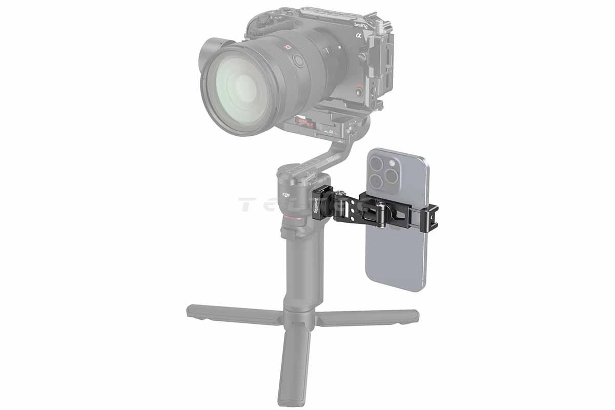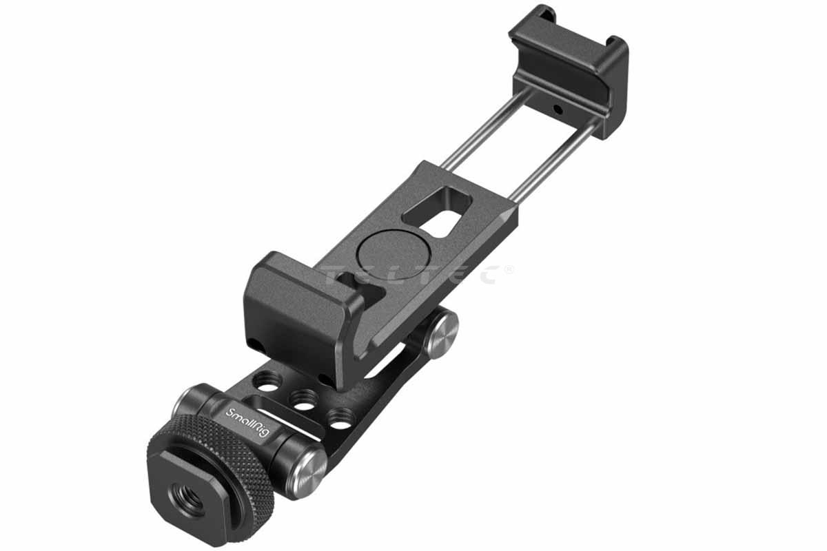 Das SmallRig 4301 Phone Holder für DJI Gimbals ist eine Handyhalterung, die speziell für die DJI Gimbals entwickelt wurde und auf der seitlichen NATO-Schiene montiert werden. Die Ausrichtung kann einfach durch Drehen geändert werden, sodass Aufnahmen im Hoch- oder Querformat möglich sind. Mit Hilfe der drei Drehgelenke wird eine flexible Positionierung erreicht. Zudem erlauben die integrierten Gewindelöcher die Installation der Powerbank-Halterung 2336/2790*.