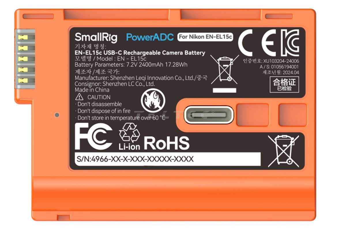 - 1x SmallRig 4966 EN-EL15c USB-C Rechargeable Camera Battery (Orange)