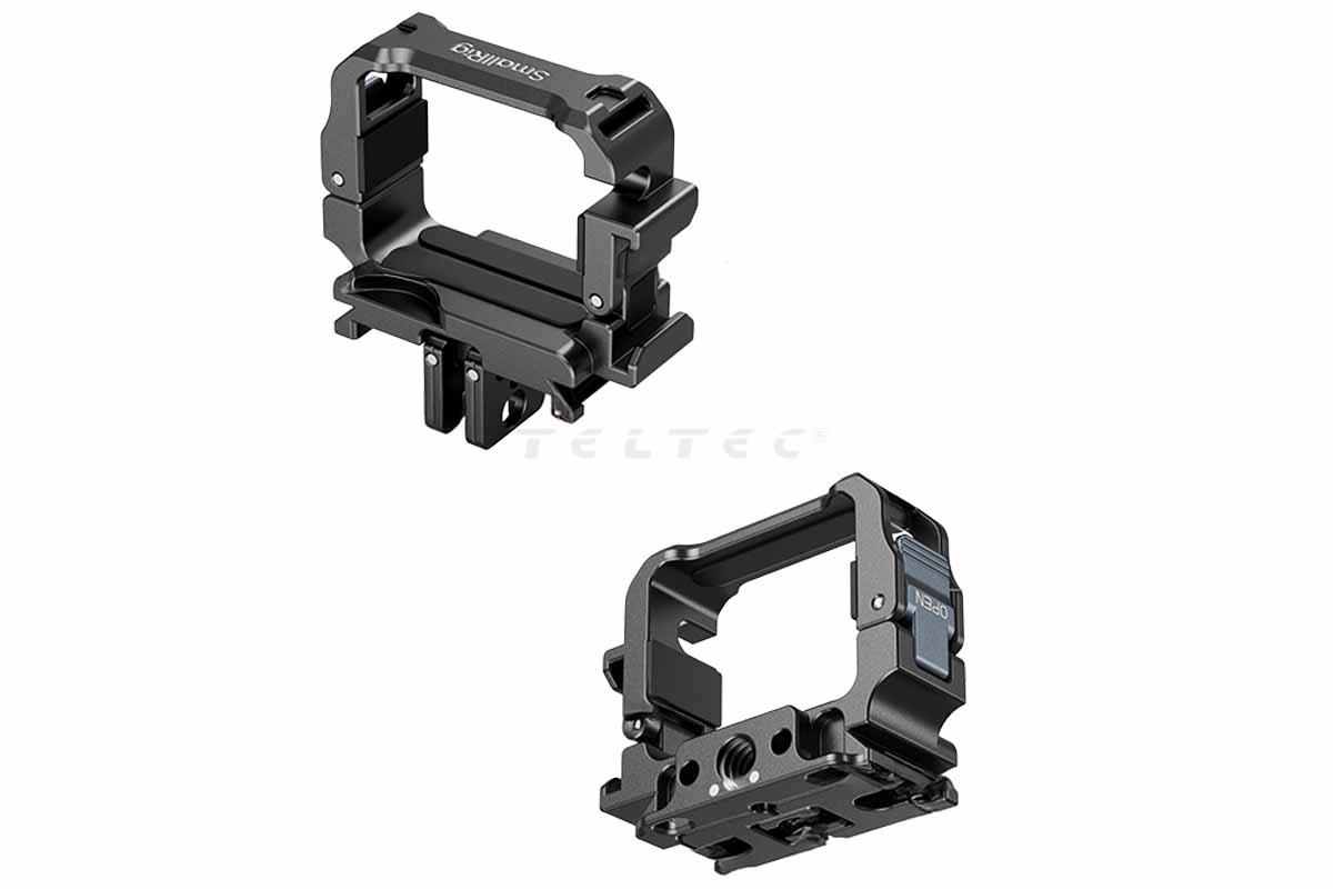 Der SmallRig 5607 Cage Adapter for DJI Osmo Pocket 3 ist ein Käfig mit 1/4"-20-Gewindebohrungen, einer klappbaren 2-Zinken-Halterung, einer Cold-Shoe-Halterung sowie einer Action-Schnellwechselplatte. Durch seine umkehrbare Befestigung ermöglicht er eine flexible Bildschirmausrichtung. Durch sein kompaktes Design passt er nahtlos in die Original-Schutzhülle, ohne das er entfernt werden muss und bewahrt den Zugang zu wichtigen Kameraanschlüssen.
