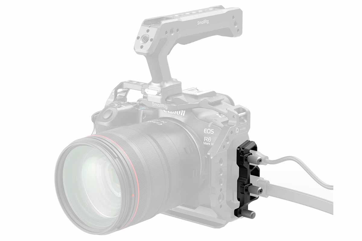 Die SmallRig 5969 HDMI und USB-C Kabelklemme für Canon EOS R6 Mark III, R6 II und R5 II Cages verhindert ein unbeabsichtigtes Herausrutschen der Kabel aus den Anschlüssen am Kameragehäuse und sorgt so für ein unterbrechungsfreies Signal. Die Kabelklemme ist mit den folgenden SmallRig Kamerakäfigen kompatibel: 5953, 5954, 4161, 4975B, 4977B, 4978B und 5092.