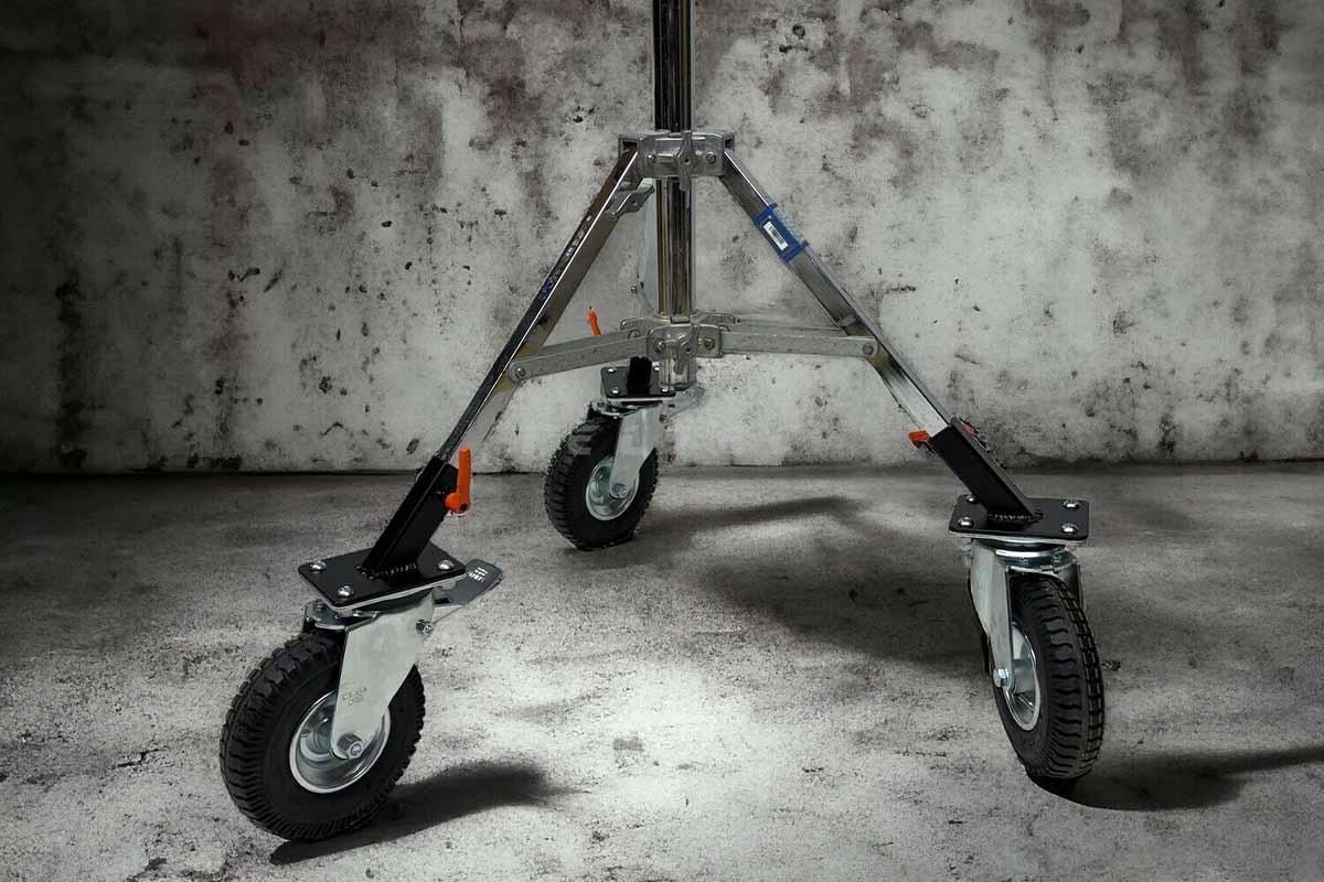 Das Steelfingers Wheels Hi Walker + Low Boy Set Outside (3 Stück) ist ein Set aus drei Rollen/Rädern für verschiedene Stative. Sie eignen sich für Stative mit einem Durchmesser von 35 x 35 mm. Die Lenkrollen sind von der Marke Blickle (Modell L-P 222R-ST) und haben einen Durchmesser von 150 mm. Außerdem verfügen sie über eine zweifache Kugellagerung und lassen sich pro Rad bis zu 100 kg belasten. Sie eignen sich für den Außeneinsatz und sind mit einem Wasserablauf ausgestattet.