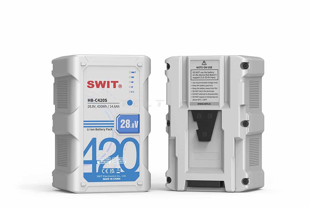 Das Swit HB-C420S ist ein Super-Highload-28,8 V-Akku mit V-Mount-Halterung, das ideal für den Langzeitbetrieb oder Leuchten mit einem hohen Stromverbrauch geeignet ist. Das PC-P461S Ladegerät von Swit kann 4x V-Mount-Akkus gleichzeitig mit 33,6 V/3 A, 100 W pro Kanal und superschneller Ladegeschwindigkeit aufladen, was im Vergleich zu normalen Ladegeräten bis zu 60 % Ladezeit spart.