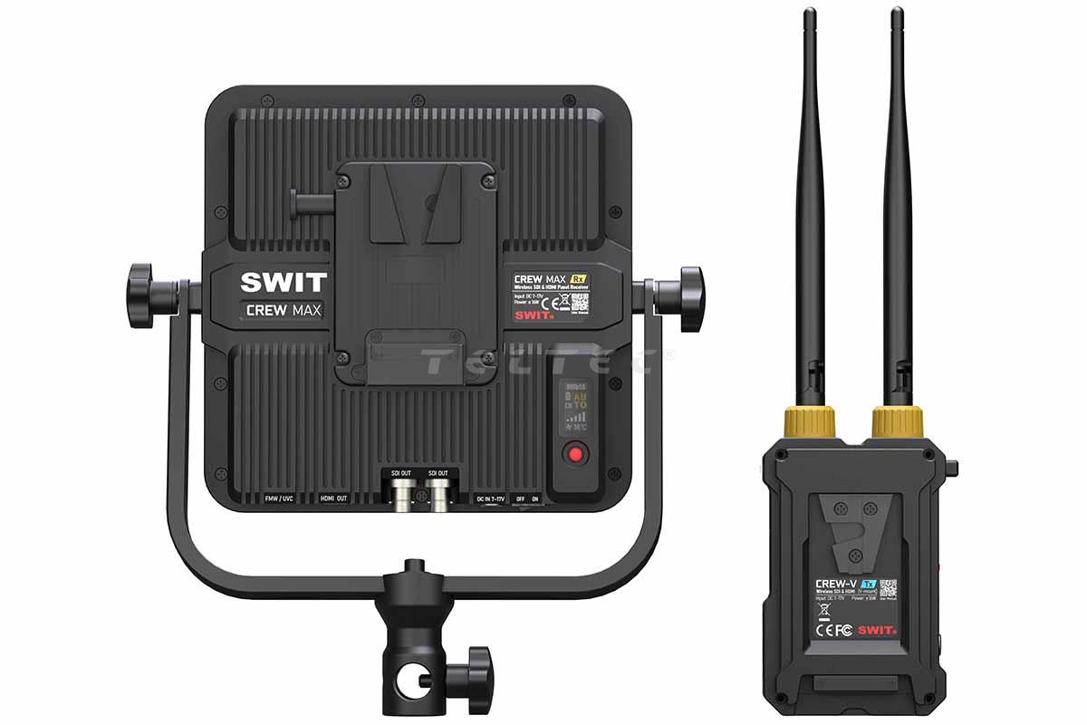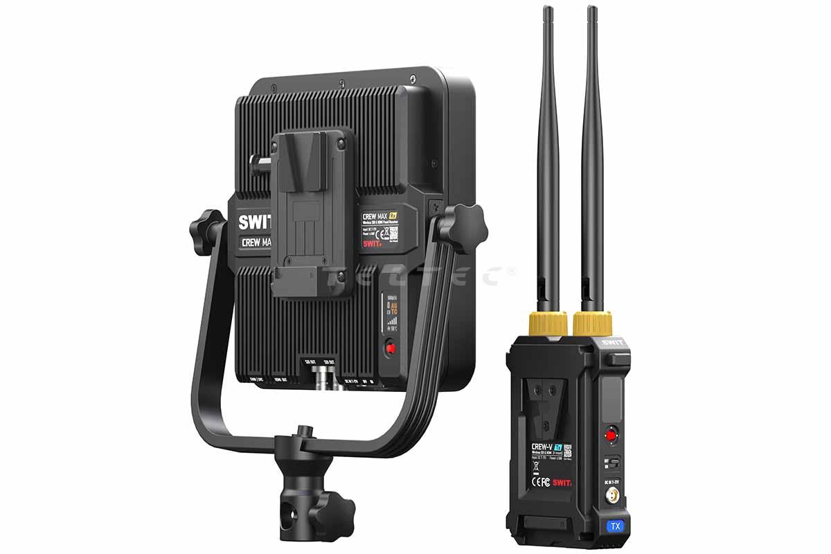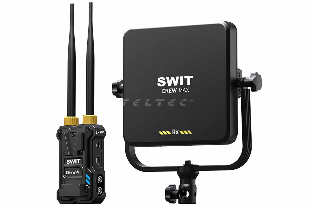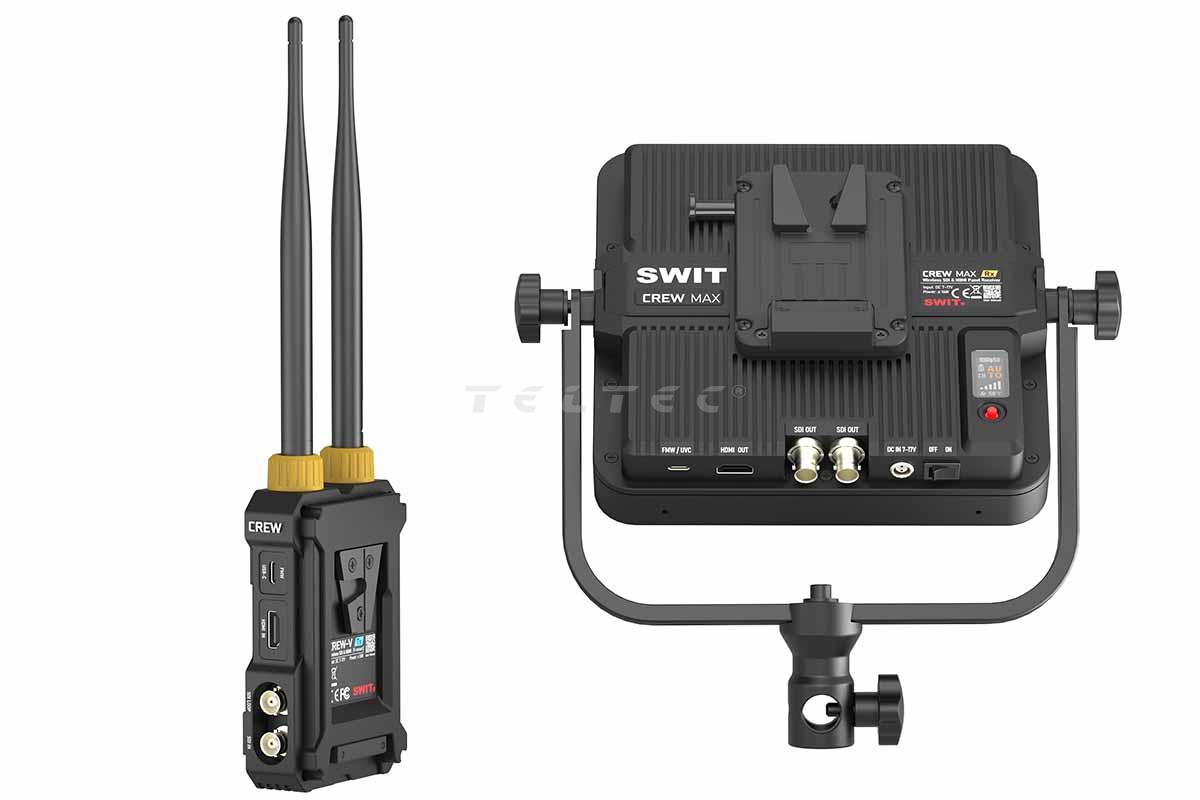Das Swit CREW V-MAX ist ein professionelles drahtloses Videosystem mit bis zu 3 km Reichweite, speziell entwickelt für Broadcast-, Film- und Eventproduktionen. Das Set besteht aus einem kompakten Transmitter mit HDMI- und SDI-Eingängen und einem Panel-Receiver mit integrierter Hochleistungsantenne, der für große Reichweiten und stabile Verbindung sorgt. Dank KUWI 2.0 RF-Technologie und H.265-Codec mit bis zu 26,8 Mbit/s liefert das System eine visuell verlustfreie Bildübertragung bei konstanter Latenz von 32 ms. Zusätzlich ist eine USB-C-Capture-Funktion für Livestreaming integriert. Das System unterstützt Multicast mit bis zu 4 Empfängern und überträgt Metadaten sowie Timecode-Trigger zuverlässig. Für flexible Energieversorgung sorgen Dual-V-Mount, LEMO- und USB‑C-Stromanschlüsse.