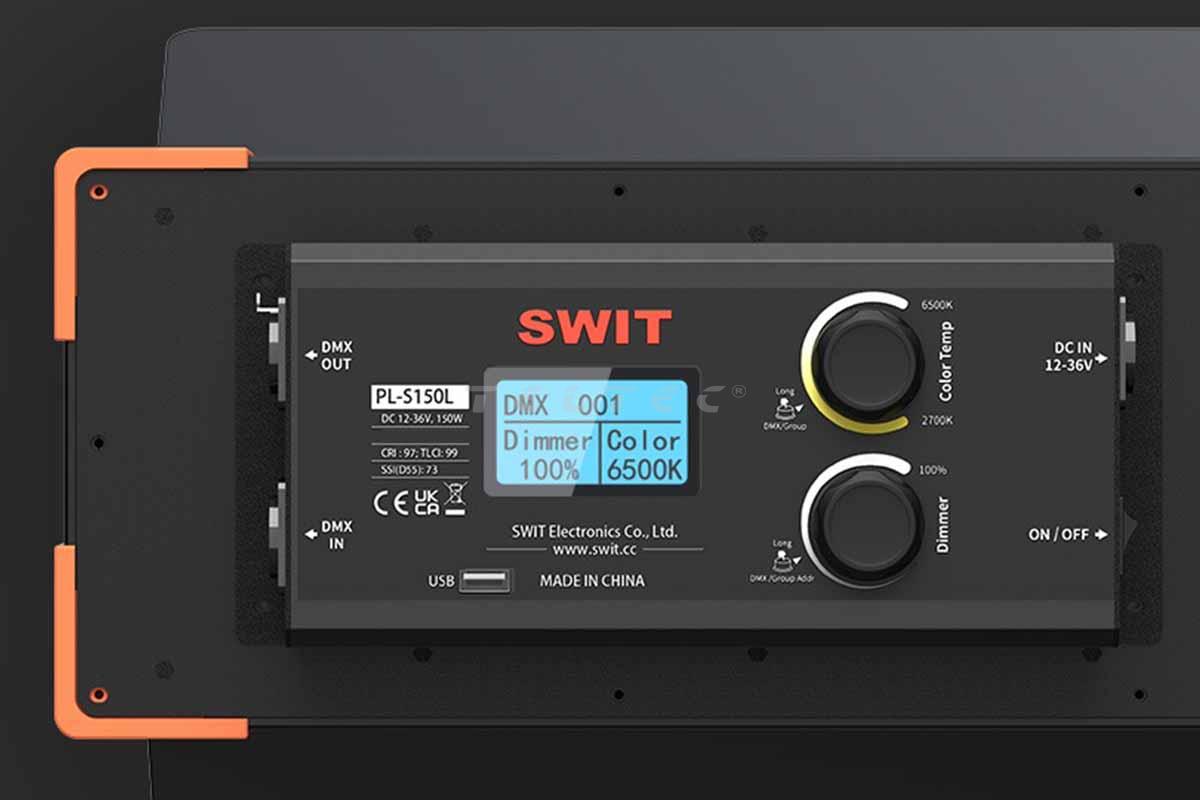 Die Swit PL-S150L ist ein 150 W Bi-Color SMD-LED-Panel für Studio-, Broadcast- und Video-Anwendungen. Die 3 x 0,5 ft Bauform ermöglicht die Montage nah an der Decke und eignet sich damit für Studios mit niedriger Deckenhöhe. Die Leuchte bietet stufenlos 2700–6500 K, eine weiche Abstrahlung (69° Halbwert) und lautlosen Betrieb ohne Lüfter. CRI 97 / TLCI 99 / SSI( D55) 73 sichern hohe Farbtreue. DMX512, LCD-Anzeige und V-Mount geben Flexibilität im täglichen Einsatz.