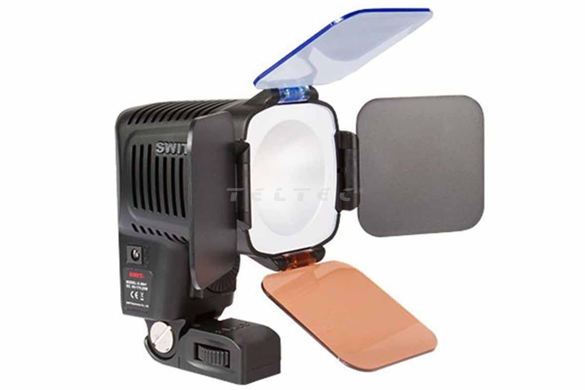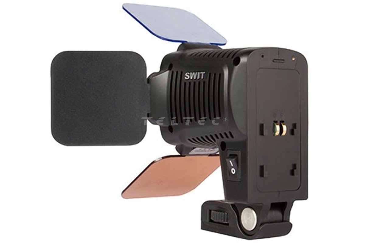 Das Swit S-2041 ist ein kompaktes COB LED On-Camera-Licht für professionelle Videoanwendungen. Dank Chip-on-Board-Technologie bietet die Leuchte eine gleichmäßige, blendfreie Lichtverteilung mit bis zu 1.800 Lux Lichtleistung auf einen Meter Distanz. Mit einem 23 Watt Lichtoutput entspricht sie einer herkömmlichen 100 Watt Halogenlampe. Die Leuchte hat eine Farbtemperatur von 5.000 K sowie einschwenkbare Filter für 3200 K und 5600 K. Die kompakte Bauweise, das geringe Gewicht sowie die kompatiblen Wechselplatten für DV-Akkus machen sie besonders flexibel für den mobilen Einsatz.