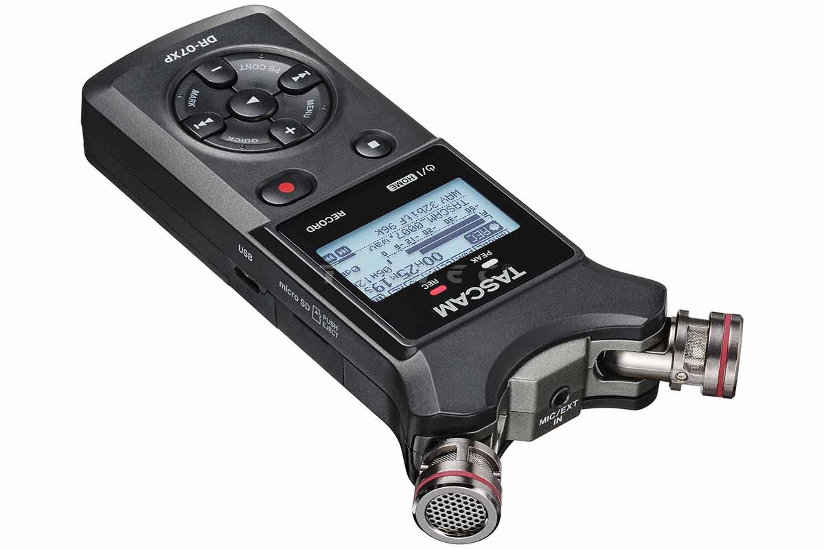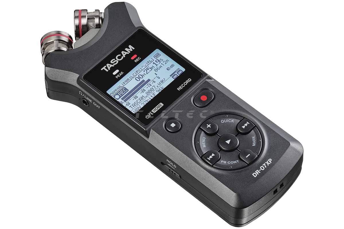 Der Tascam DR-07XP ist ein tragbarer Stereo-Audiorecorder mit USB-Interface und verstellbaren Mikrofonen. Der DR-07XP verfügt über Stereo-Kondensatormikrofone, die sich in AB- oder XY-Konfiguration ausrichten lassen. Mit dem DR-07XP gehört die Komplexität von Audioaufnahmen der Vergangenheit an. Sämtliche Funktionen lassen sich bequem aus der Hand bedienen. Der DR-07XP ist nicht nur ein leistungsstarker tragbarer Recorder, sondern auch ein USB-C-Audiointerface mit zwei Eingängen und zwei Ausgängen, mit dem man überall direkt in eine Audioaufnahmesoftware auf einem Mac- oder Windows-Computer aufnehmen kann.