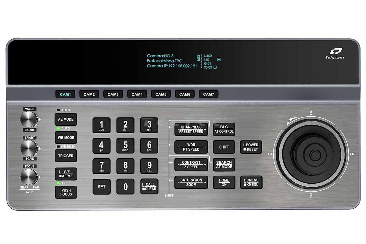 Der Telycam V-Joy+ AT ist ein leistungsstarker PTZ-Controller mit Auto-Tracking, kompatibel mit NDI®|HX, VISCA, ONVIF und mehr. Mit präzisem Joystick, OLED-Display, 256 Presets und sieben Schnelltasten ist er ideal für professionelle Video-Workflows.