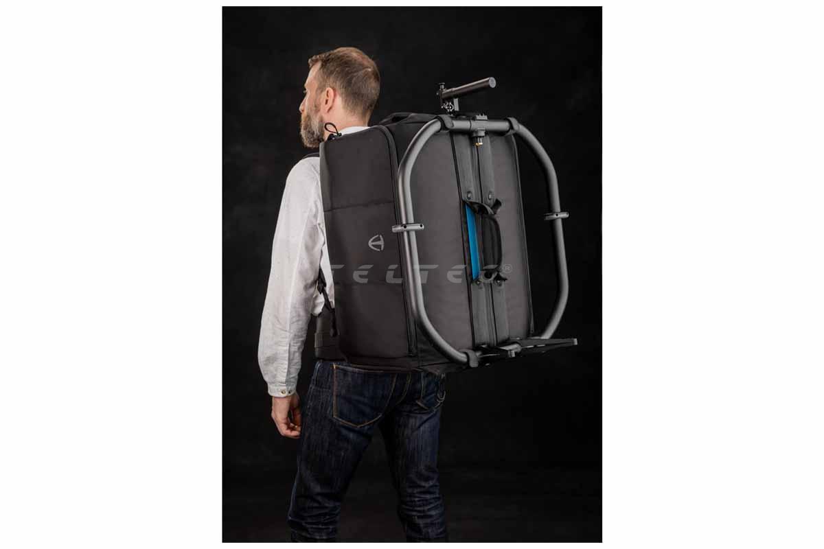 Der Tenba Cineluxe Pro Gimbal Rucksack 24 ist ein Videokamerarucksack, der entwickelt wurde, um eine professionelle Cine Kamera mit einem vollständig aufgebauten und ausbalancierten MOVI Pro oder Ronin 2 Gimbal sicher zu verstauen. Mithilfe des gimbaleigenen Schnellverschlusses kann die innere Kamerabühne vom Ring abgenommen und im Rucksack geschützt werden, während der Ring sicher an der Außenseite befestigt wird. Der Rucksack hat eine Schnellzugriffsöffnung und ist mit zwei gepolsterten Hüllen, einer gepolsterten Reißverschlusstasche sowie einem Kamera-Sicherheitsgurt ausgestattet. Für einen hohen Tragekomfort sorgt das belüftete Airflow-Rückenteil von Tenba sowie Pivot-Fit-Gurtbänder, die sich automatisch an verschiedene Schulter- und Körperformen anpassen.