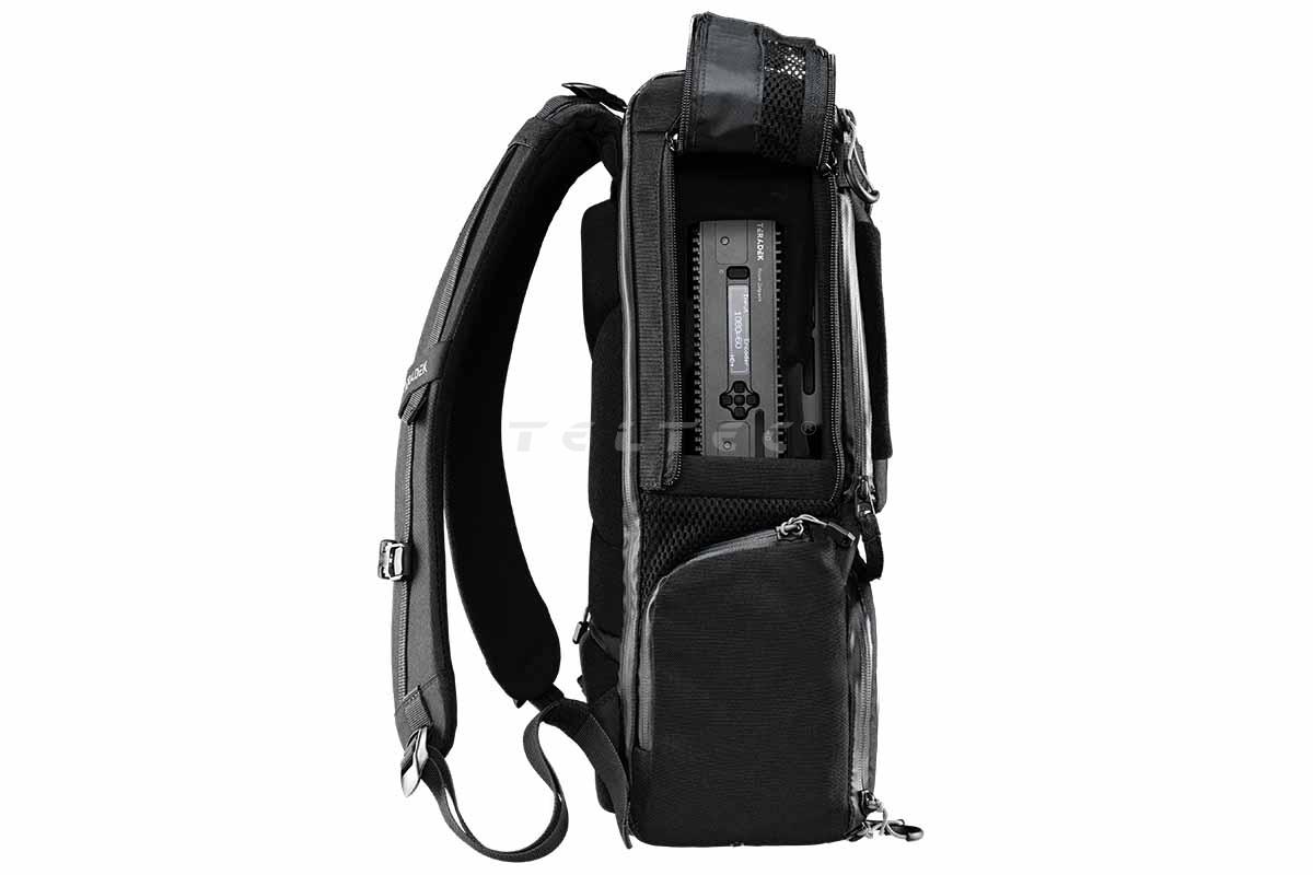 - verbaut in Lowepro-Rucksack mit speziellen Fächern für Zubehör, integrierte Regenhülle