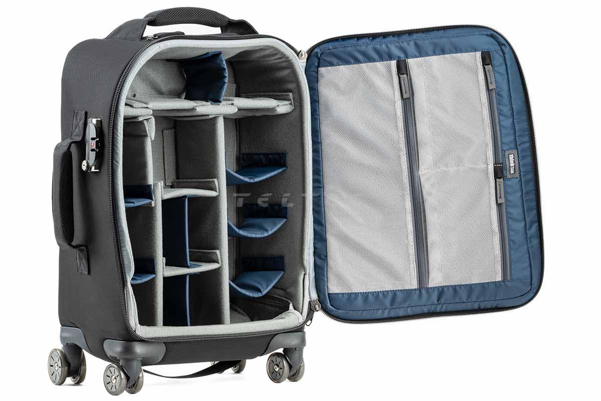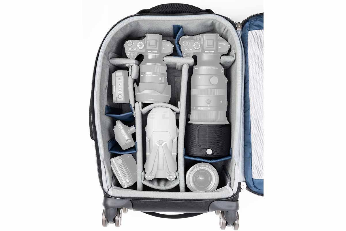 Der thinkTank Airport Roller Derby V2.0 ist ein 8-rädriger Kamerakoffer, der sich leicht in engen Räumen manövrieren lässt und nur minimalen Kraftaufwand beim Schieben oder Ziehen erfordert. Der Roller bietet Platz für zwei Kameragehäuse mit einem maximalen Objektiv von bis zu 400 mm f/2.8 (nicht montiert) und ist somit ideal für reisende Fotografen.