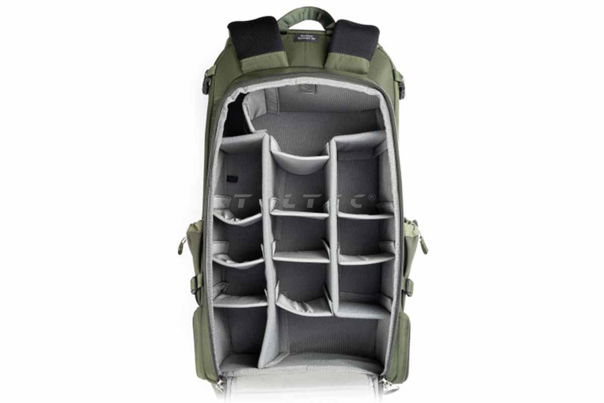 Der thinkTank BackLight 36L Montane Green setzt Think Tanks Engagement fort, Fotografen schnellen Zugriff auf ihre Ausrüstung zu ermöglichen. Die Öffnung im Rückenteil erlaubt den Zugriff auf die gesamte Ausrüstung, ohne den Rucksack abnehmen zu müssen. Die Reißverschlussöffnung auf der Rückseite reduziert die Menge an Staub, Schlamm, Eis oder anderen Elementen, die in Kontakt mit der Ausrüstung oder dem Rucksack kommen, und hält das Schultergurtsystem sauber. Der BackLight 36L bietet 11 L Kapazität im Daypack-Bereich, ausreichend Platz für persönliche Ausrüstung, einschließlich separater Fächer für ein 10”-Tablet und ein 16”-MacBook Pro.