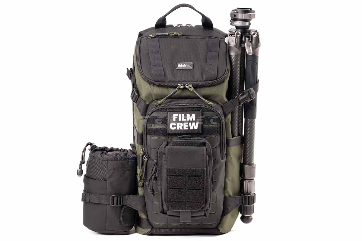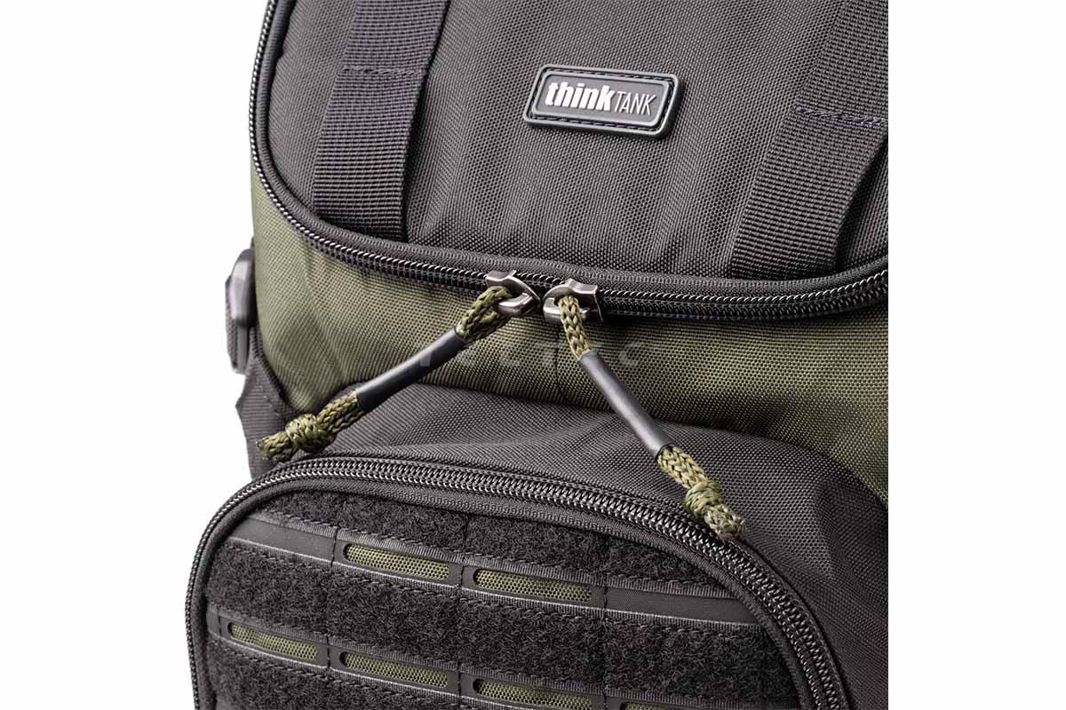- Taktische Gurtschlaufen an der Seite ermöglichen die Befestigung von Think Tank-Modultaschen