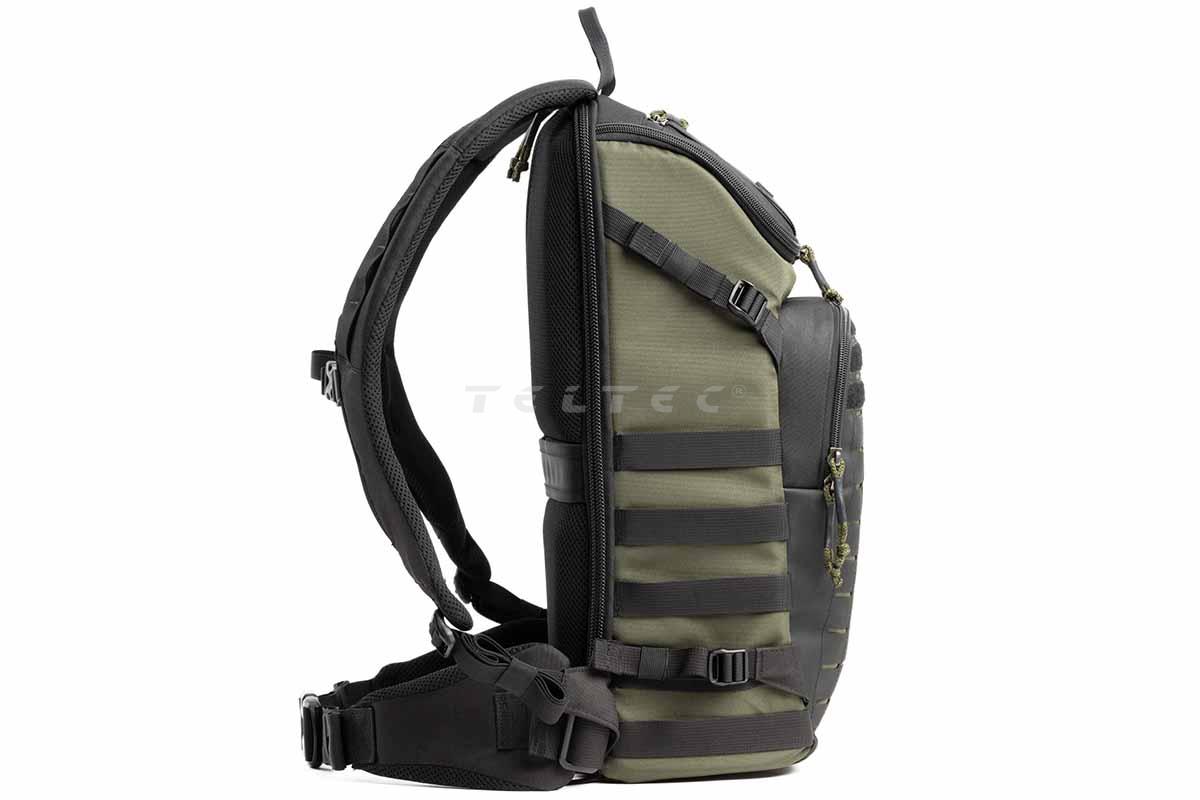 Der thinkTank DarkLight Backpack 20L - montane green ist ausgestattet mit einer lasergeschnittenen MOLLE-Element und taktischen Gurtschschlaufen und ermöglicht eine präzise Anpassung an die Ausrüstung. Man kann die Tragkapazität durch nahtlose Befestigung von Think Tank-Modultaschen nahtlos erweitern.