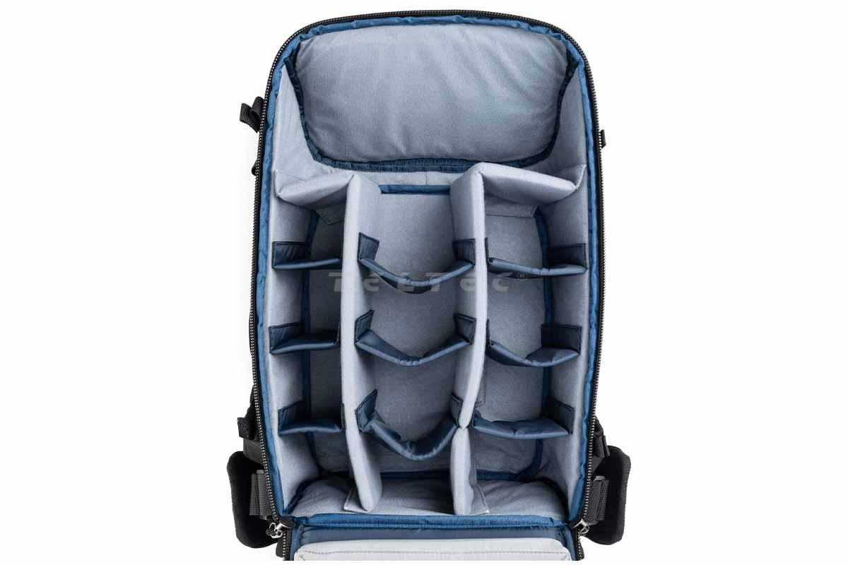 - Verstellbare Trennwände bieten Platz für große Teleobjektive, traditionelle Fotoausrüstung oder persönliche Gegenstände
