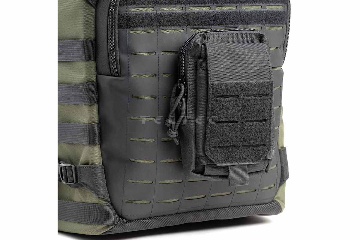 - Lasergeschnittene MOLLE-Element an der Vorderseite bietet Befestigungspunkte zur Kapazitätserweiterung und Flexibilität