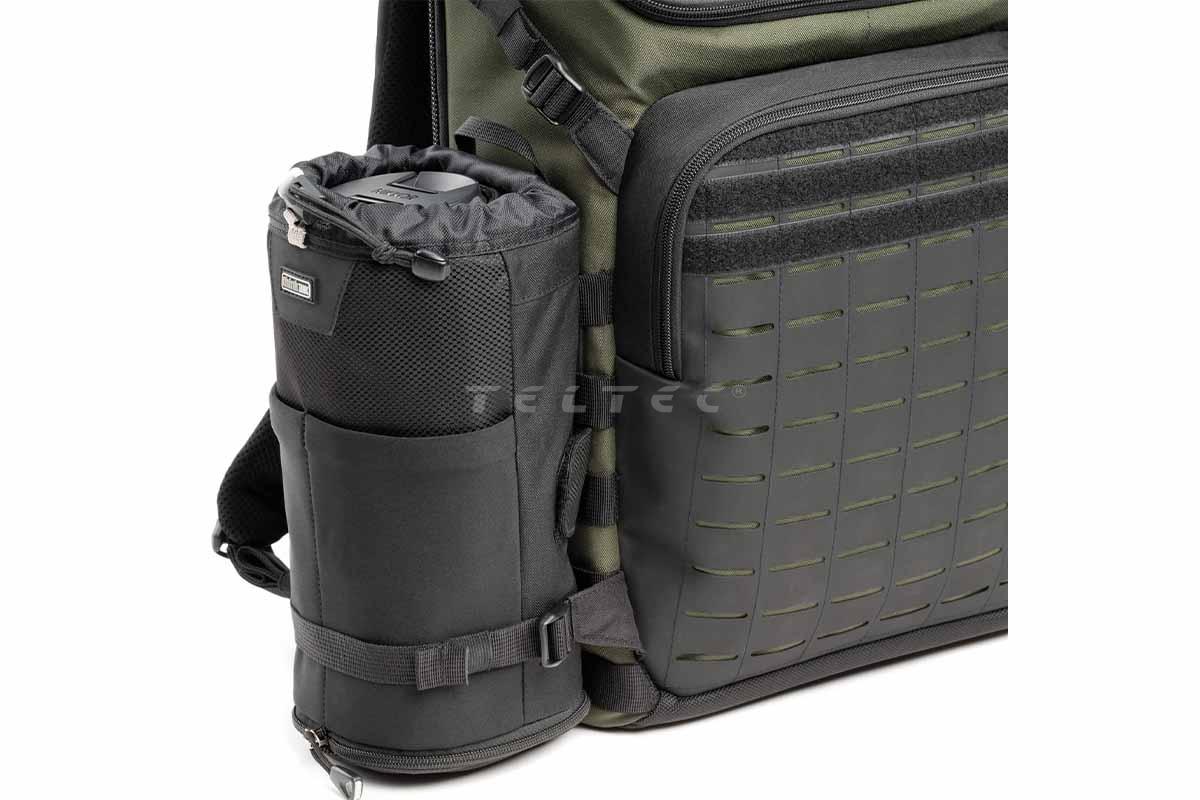 - Taktische Gurtschlaufen an der Seite ermöglichen die Befestigung von Think Tank-Modultaschen