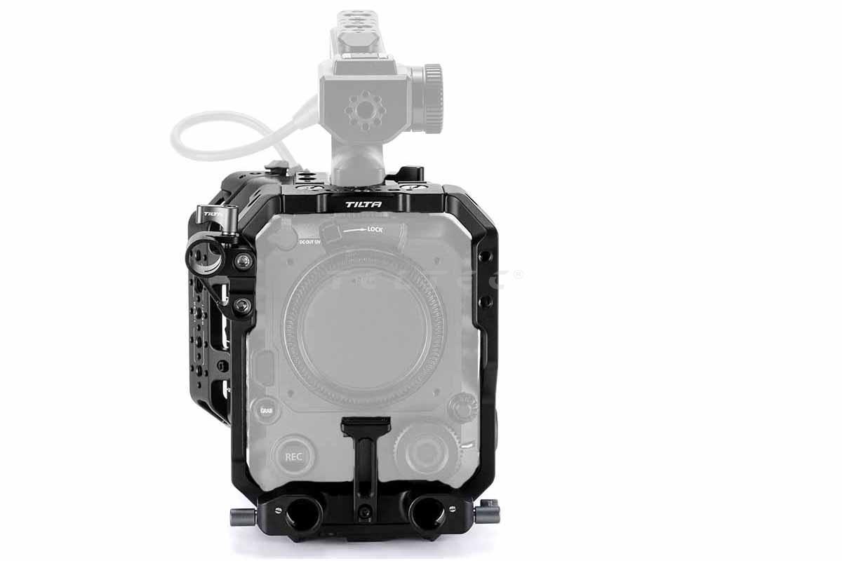 - Der Cage ersetzt die originale Rückplatte der Kamera und schützt Gehäuse sowie Bedienelemente vollständig, während alle Funktionen (Knöpfe, Anschlüsse, EVF-Zugriff) erhalten bleiben.