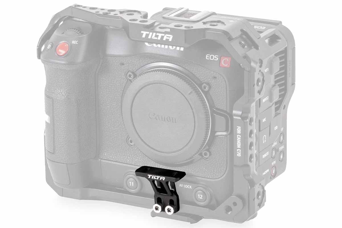 Das Tilta TA-T12-LAS-B EF Mount Lens Adapter Support for Canon C70 - Black ist eine Halterung für EF Mount Adapter mit 2x 1/4" Schraube und speziell für den Tilta Kamerakäfig der Canon EOS C70 konzipiert.