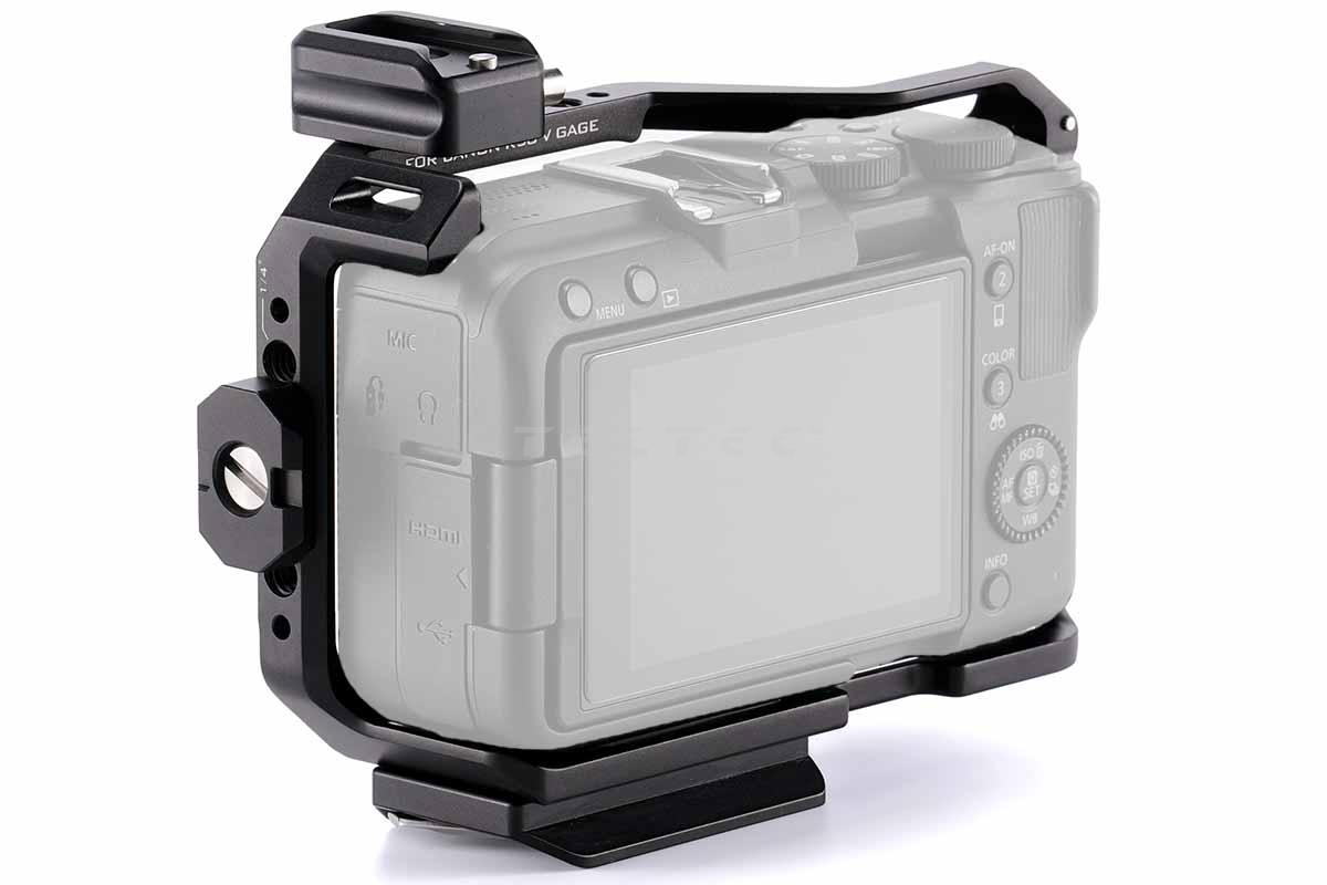 voller Kamerakäfig in Schwarz mit abnehmbaren Anschlusspunkten für die Canon R50 V