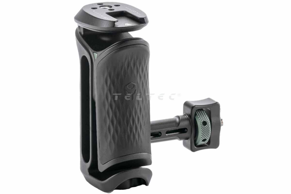 Die Konstruktion erlaubt den Einsatz als linker oder rechter Side-Handle, während die 40 mm höhenverstellbare Griffposition eine anpassbare Ergonomie für längere Handheld-Aufnahmen ermöglicht. Die rutschfeste Silikon-Textur erhöht die Stabilität beim Führen der Kamera. Zusätzliche Befestigungspunkte wie ein Cold-Shoe-Receiver sowie ein 1/4"-20 Gewinde mit Locating Points ermöglichen die Montage weiterer Zubehörteile. Ein integrierter 3-mm Inbusschlüssel erleichtert schnelle Anpassungen am Griff oder anderen Rig-Komponenten.