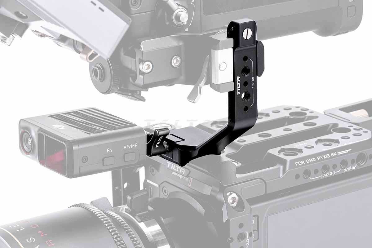 Das Tilta TGA-FP-EK Erweiterungskit für DJI Focus Pro erweitert die Befestigungsmöglichkeiten für den Focus Pro Handgriff und den LiDAR-Entfernungsmesser. Der Tilta TGA-FPG-THA Top Handle Adapter für DJI Focus Pro Griff ermöglicht es dem Benutzer, den Focus Pro Hand Grip in einer horizontalen Position auf der Oberseite eines Kameragehäuses über eine NATO-Schiene zu montieren, um ihn als Top Handle zu verwenden. Die Tilta TGA-FPL-RMB Drehbare Montagehalterung für DJI Focus Pro LiDAR bietet dem Nutzer zusätzliche Flexibilität bei der Montage des LiDAR-Entfernungsmessers über eine Cold Shoe Halterung und eine verstellbare Halterung.