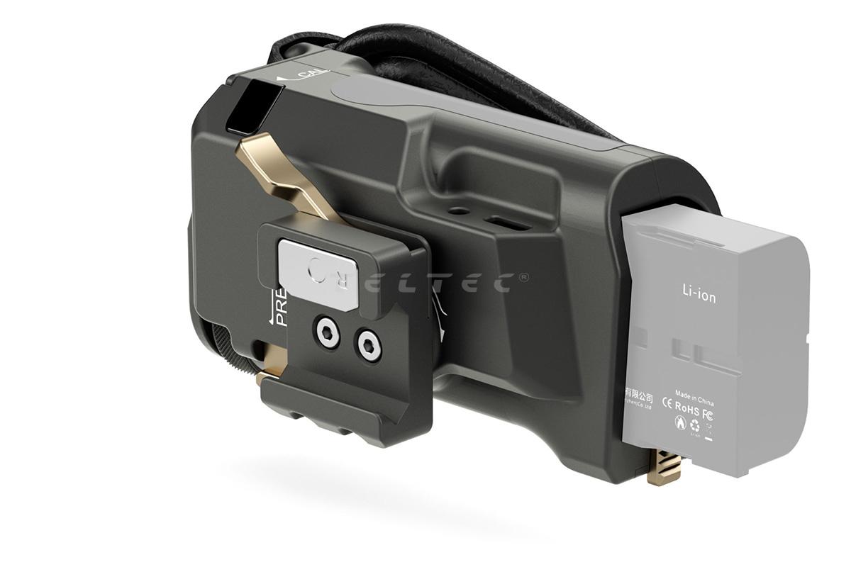 - NP-F570 Akkufach an der Unterseite des Griffes