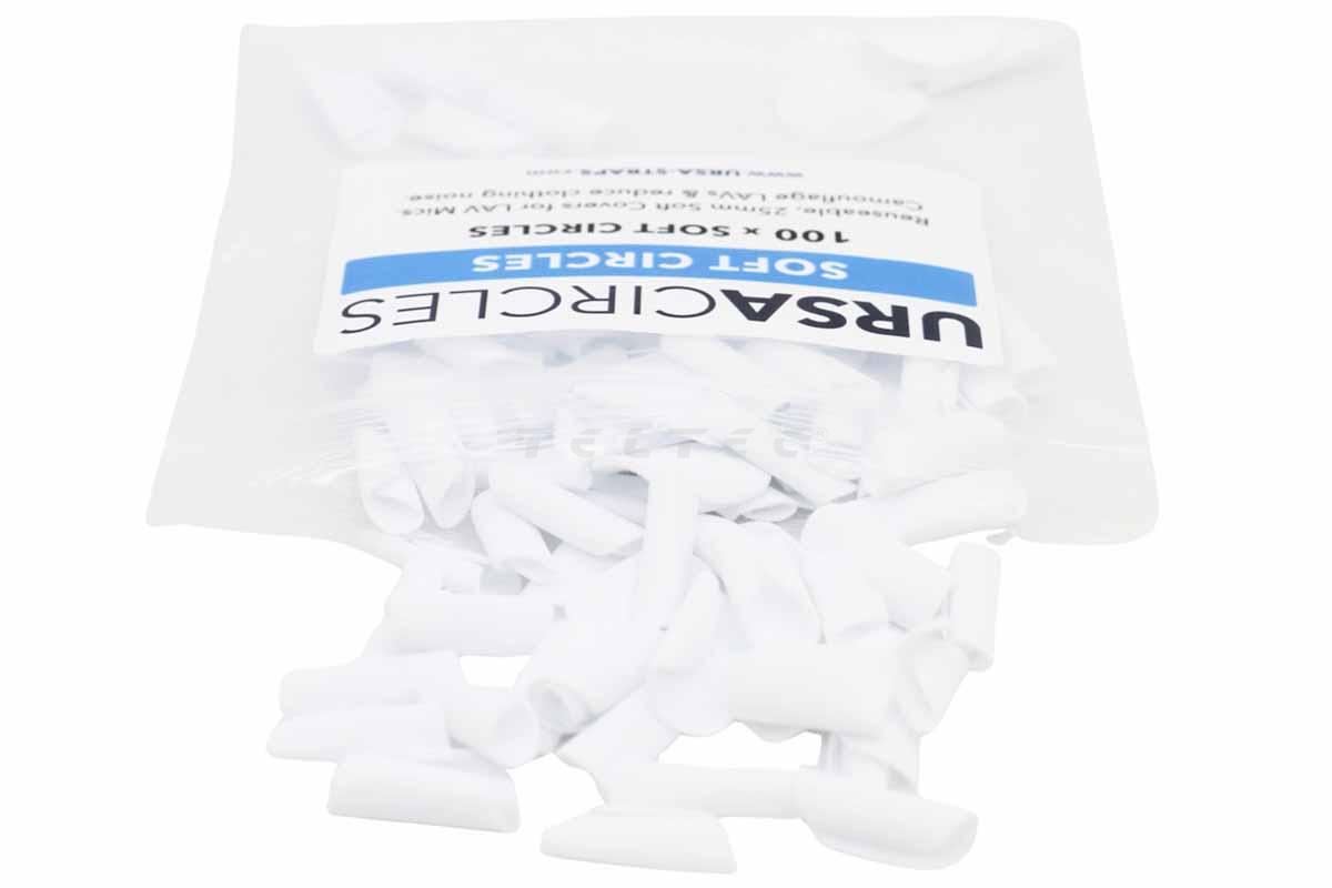 Die Ursa Straps 100x Soft Circles / WHITE sind dehnbare Schaumstoffüberzüge zur Störgeräuschprävention für Ansteckmikrofone. Sie können auch zusammen mit den separat erhältlichen Sticky Circles verwenden werden, um an jeder gewünschten Stelle angebracht werden zu können.