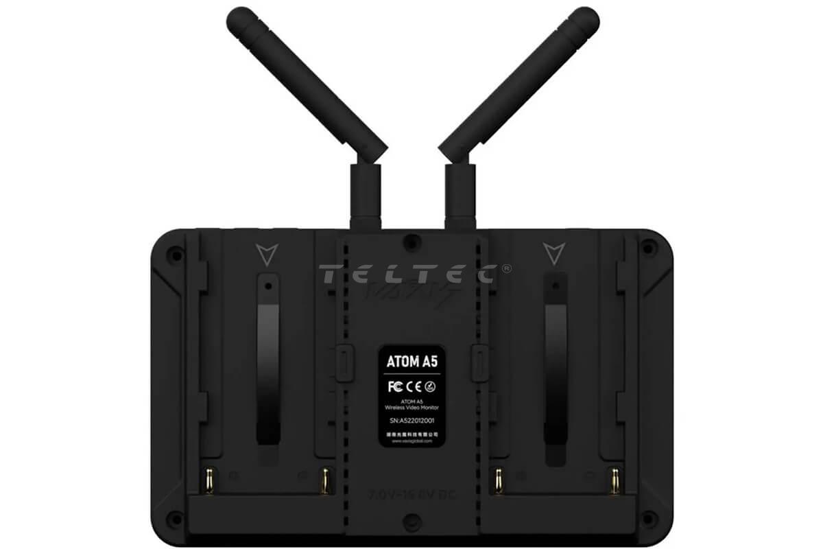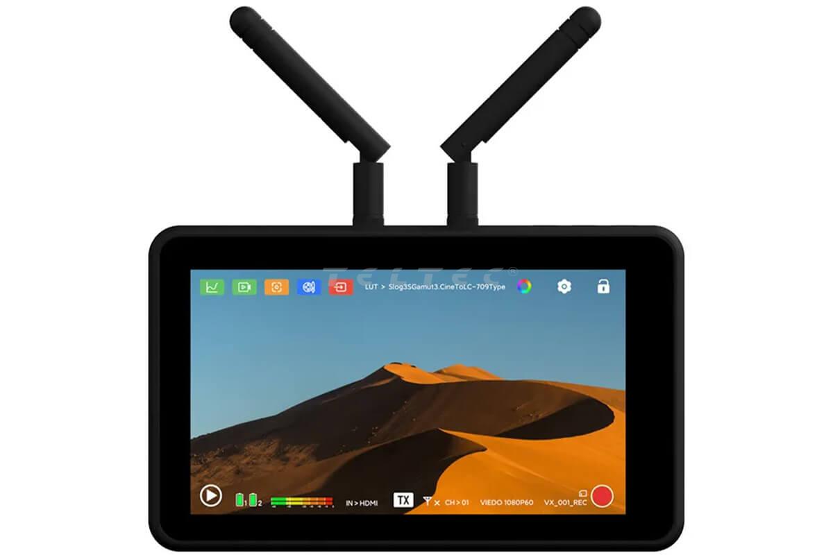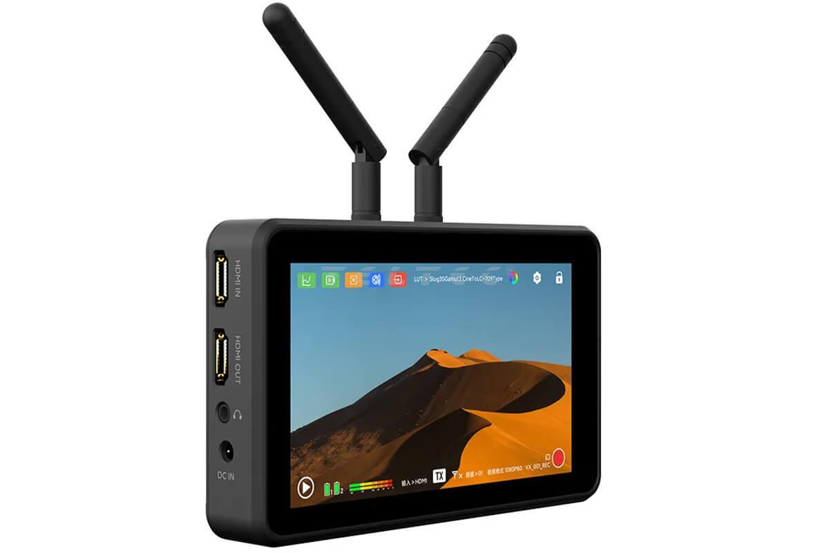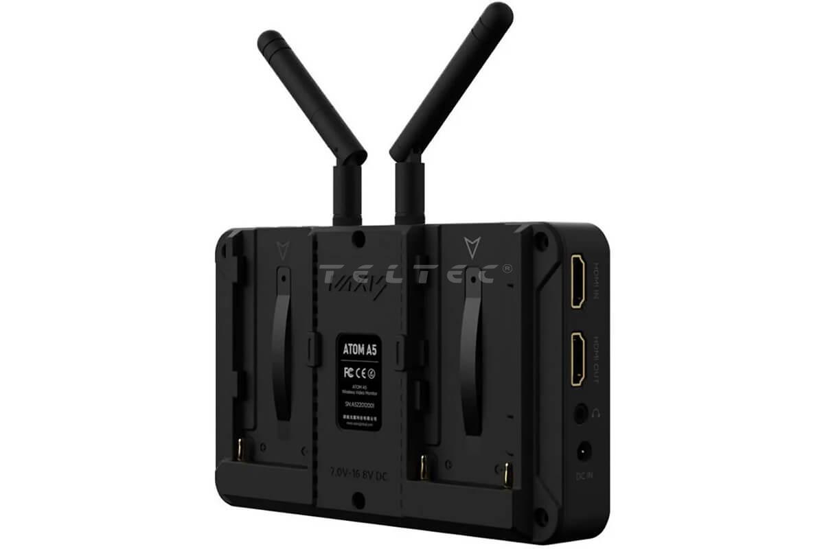 Der Vaxis ATOM A5 Monitor ist ein kompakter 5,5" LCD FullHD Touchscreen-Monitor mit eingebautem Funksender und Empfänger. Der Monitor bietet eine Helligkeit von 1000 nits und eine Übertragungsreichweite von bis zu 150 m.