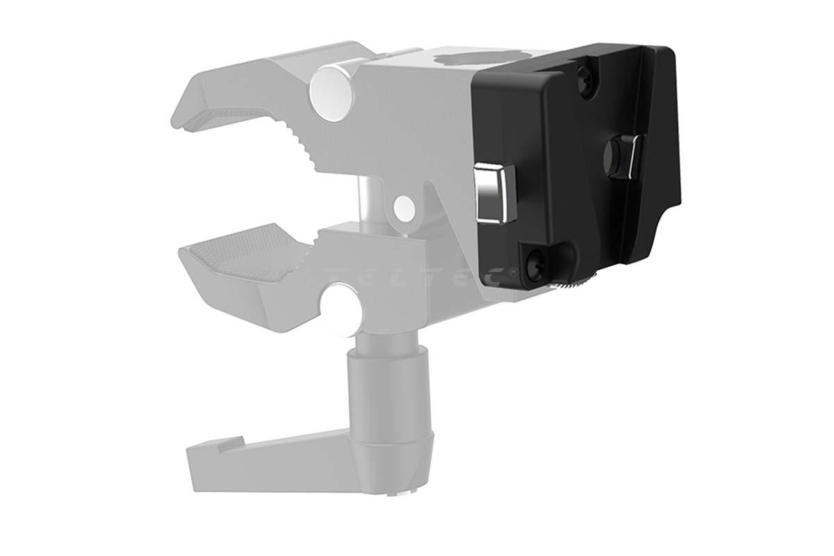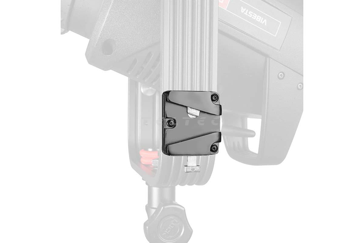 Der Vibesta NanoCore V3PL ist eine V-Lock-Halterung mit einem 3/8"-16 Gewinde und ARRI-kompatiblen Pin-Lock zur Befestigung am Peragos Head 150C Yoke oder anderem Zubehör mit diesem Gewinde. Zudem ist es möglich den AC-Adapter des Peragos Head 150C an der Seite des Yoke's mit einem Schnellverschluss anzubringen.